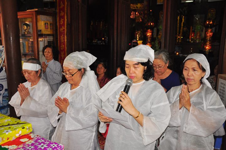 Qua lời tác bạch thiết tha chân thành của đại diện Tang quyến, Hòa thượng Thích Minh Thiện, thay mặt cho toàn thể chư tôn thiền đức Tăng Ni có đôi lời đạo từ với gia đình Tang quyến. Hòa thương dạy: “tâm hiếu là tâm Phật hạnh hiếu là hạnh Phật”, thông qua kinh Mục Liên Sám Pháp và kinh Vu Lan, Ngài nêu cao tấm gương hiếu hạnh của Ngài Mục Kiền Liên, và khen ngợi tấm lòng hiếu hạnh của toàn gia quyến. Qua bài kinh Phước Đức: