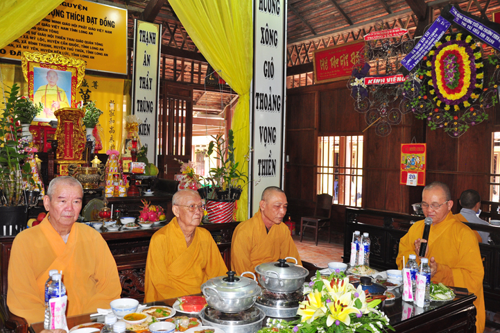 Đến trợ niệm và chứng minh cho buổi lễ có Hòa thượng thượng Tắc hạ Trụ viện chủ chùa Pháp Tịnh, Hòa thượng thượng Thiện hạ Huệ viện chủ chùa Thiên Khánh, HT.Thích Minh Thiện- UVHĐTSTƯ, Phó Ban Hoằng pháp trung ương,Trưởng BTS GHPGVN tỉnh Long An, HT. Thích Huệ Bạch- Trưởng BTS GHPGVN huyện Cần Giuộc, HT. Thích Thiện Xuân- Trưởng BTS GHPGVN Q.Tân Phú, trụ trì chùa Hạnh Nguyện, cùng với sự tham dự và chứng minh của Chư tôn hòa thượng chư thượng tọa đại đức Tăng, Ni trụ trì các tự viện trong và ngoài tỉnh Long An.