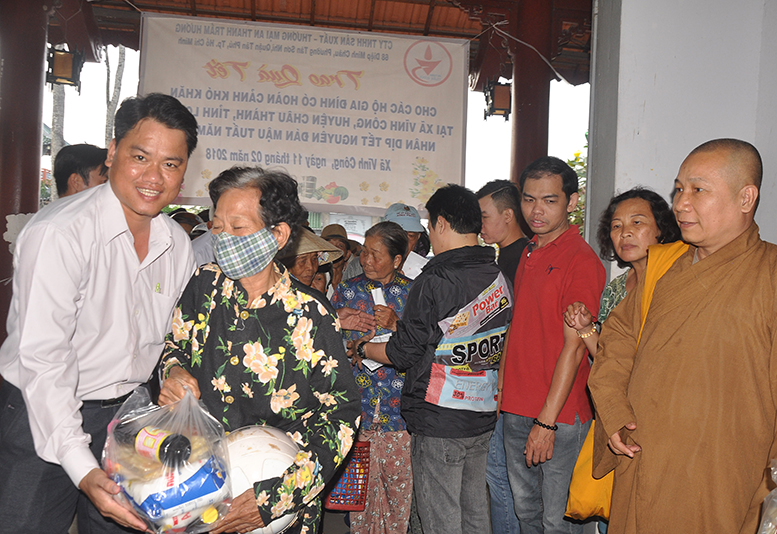 Để cho bà con có nghèo cảnh khó khăn hưởng một mùa xuân trọn vẹn, chiều ngày 11 tháng 02 năm 2018( 26/12/ Đinh Dậu) chùa Vĩnh Hưng, ấp 4, xã Vĩnh Công, huyện Châu Thành, tỉnh Long An tổ chức phát quà tết cho những hộ gia đình nghèo, cận nghèo tại địa phương.