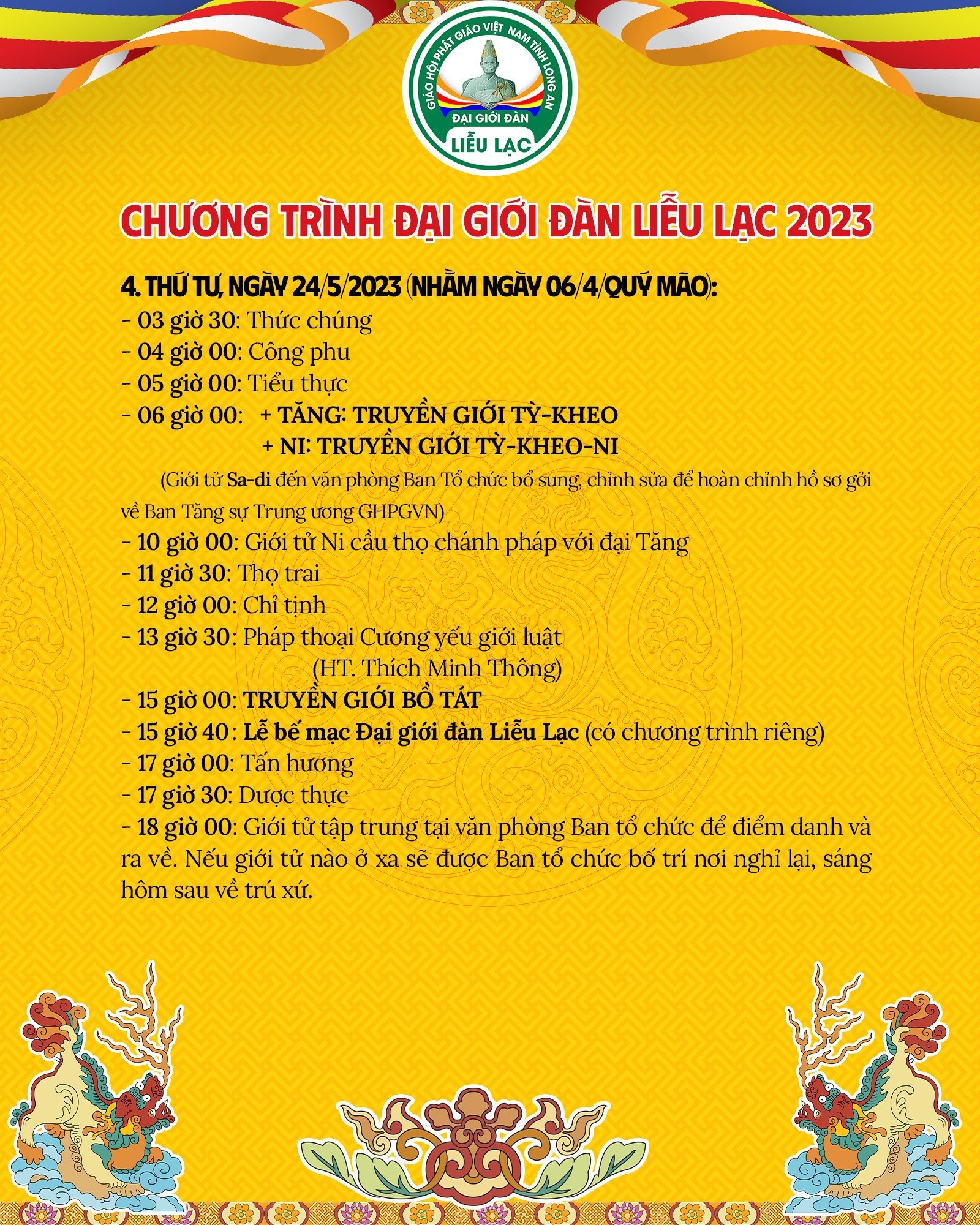 - Thứ tư, ngày 24/5/2023 (nhằm ngày 06/4/Quý Mão):