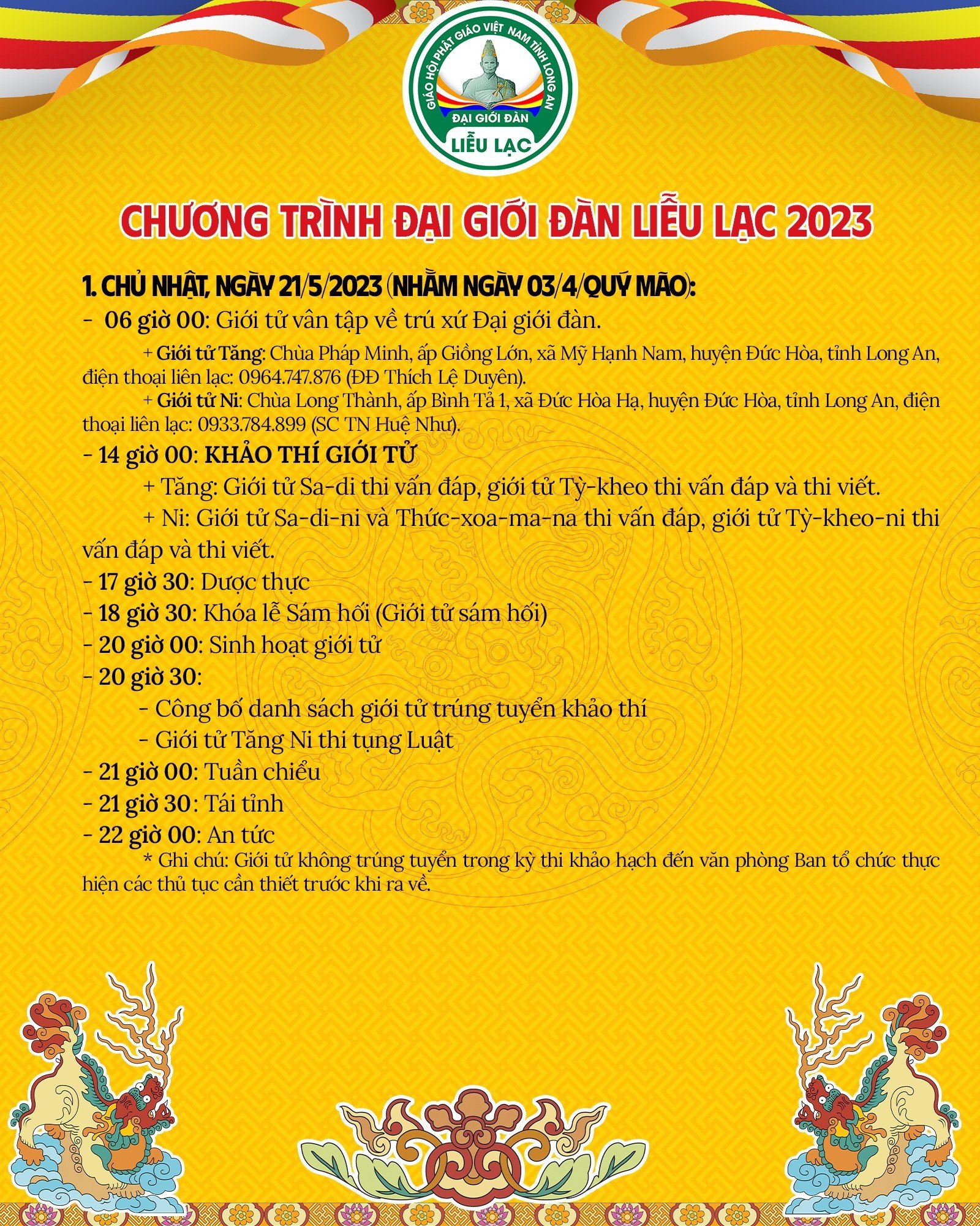 * Ghi chú: Giới tử không trúng tuyển trong kỳ thi khảo hạch đến văn phòng Ban tổ chức thực hiện các thủ tục cần thiết trước khi ra về.