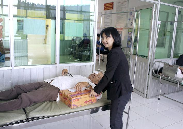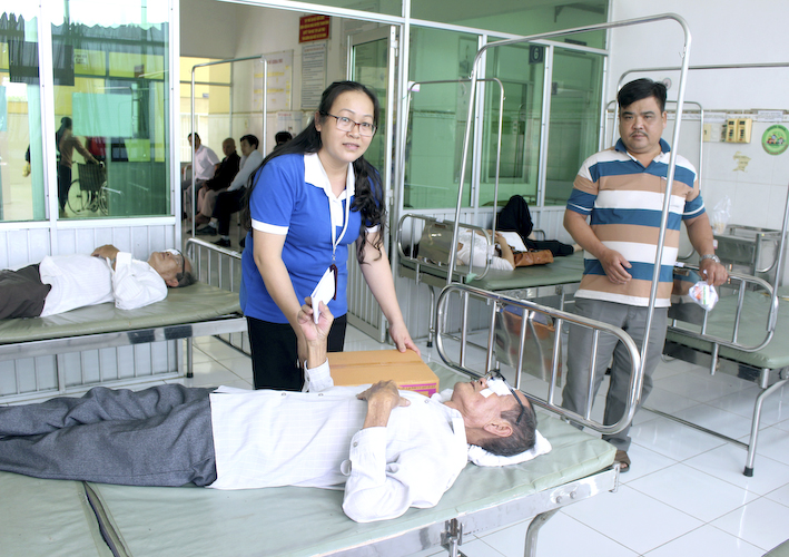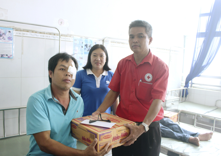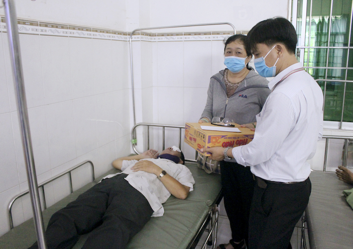 Đồng thời đoàn cũng gởi quà đến 131 bệnh nhân mỗi người một thùng mì, cặp kính che bụi và tiền mặt một trăm nghìn đồng (100.000 đồng).