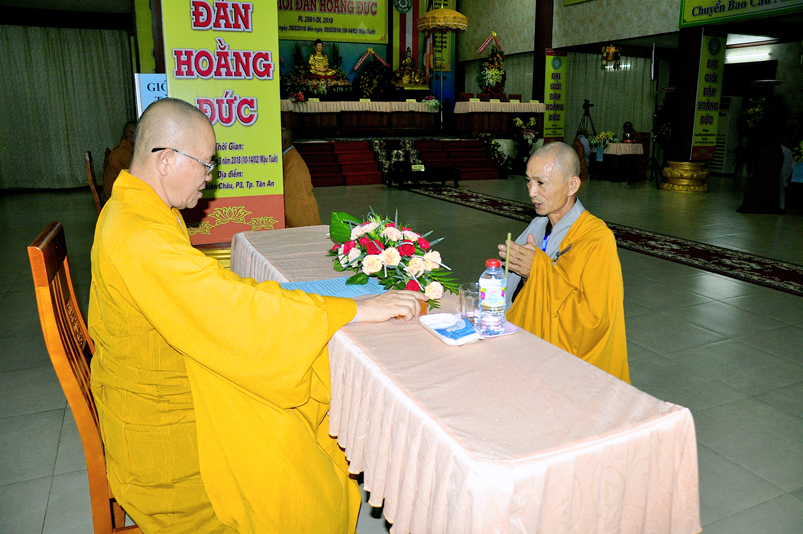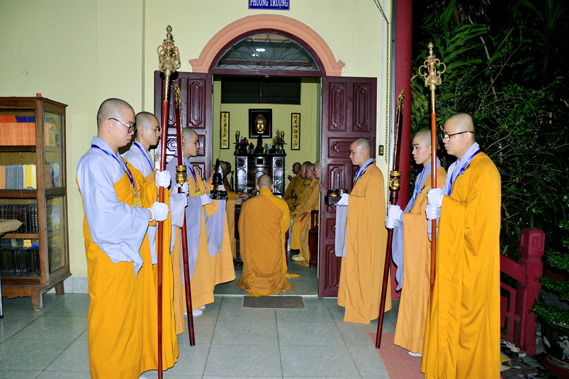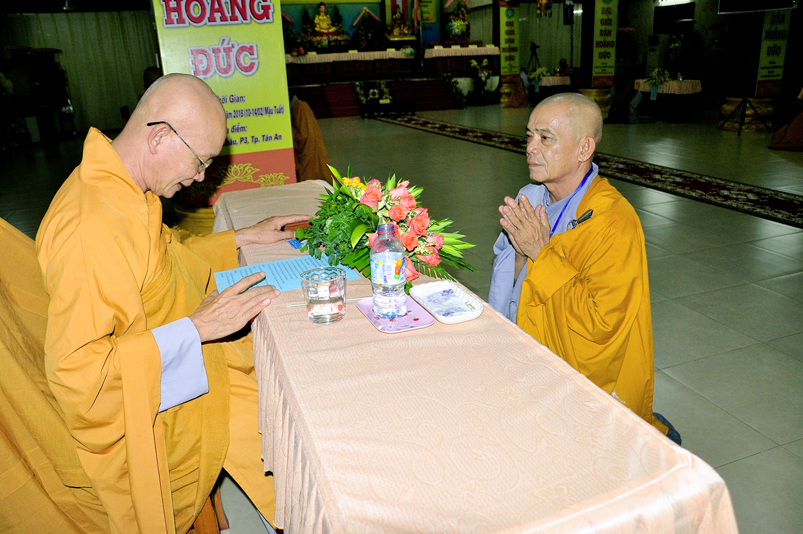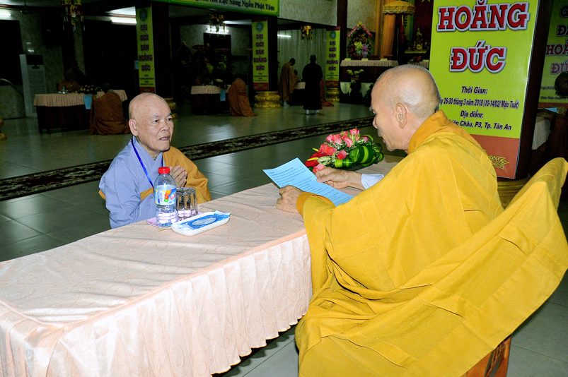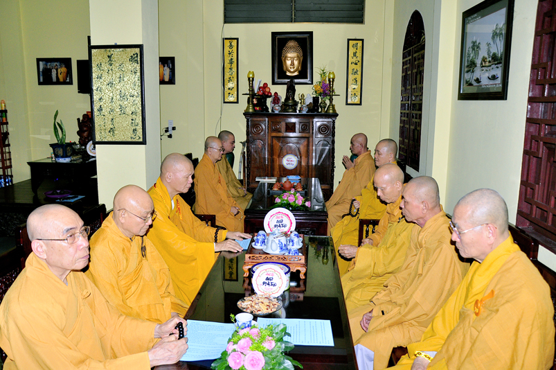 Hòa thượng Thích Minh Thông – Phó Trưởng ban Tăng sự Trung ương GHPGVN, Phó Trưởng ban kiêm Trưởng ban Giáo dục Phật giáo GHPGVN Tp HCM; Hòa thượng Thích Quang Nhuận – Phó Trưởng ban Thường trực Ban Hoằng pháp Trung ương, Chứng minh Ban Trị sự GHPGVN tỉnh Thừa Thiên Huế; Hòa thượng Thích Thiện Huệ – Chứng minh Ban Trị sự GHPGVN tỉnh Long An, Chứng minh Trường Sơ Trung Cấp Phật Học Long An; Hòa thượng Thích Hải Ấn – Viện trưởng Học viện Phật giáo Việt Nam tại Thừa Thiên Huế, Chứng minh Ban Trị sự GHPGVN tỉnh Thừa Thiên Huế; Hòa thượng Thích Phước Toàn – Ủy viên Ban Văn Hóa Trung ương GHPGVN; Hòa thượng Thích Minh Thiện – Ủy viên Hội đồng Trị sự GHPGVN, Phó Trưởng ban Hoằng pháp Trung ương, Trưởng ban Trị sự GHPGVN tỉnh Long An; Hòa thượng Thích Huệ Hồng – Chứng minh Ban Trị sự GHPGVN tỉnh Long An, viện chủ chùa Phổ Hương, huyện Thạnh Hóa; Hòa thượng Thích Thiện Hảo – Phó Trưởng ban Hoằng pháp GHPGVN tỉnh Đồng Tháp; Hòa thượng Thích Thiện Pháp – Viện chủ chùa Hội Linh, Tp Cần Thơ; Thượng toạ Thích Phước Cường – Phó ban Nghi lễ GHPGVN tỉnh Long An.