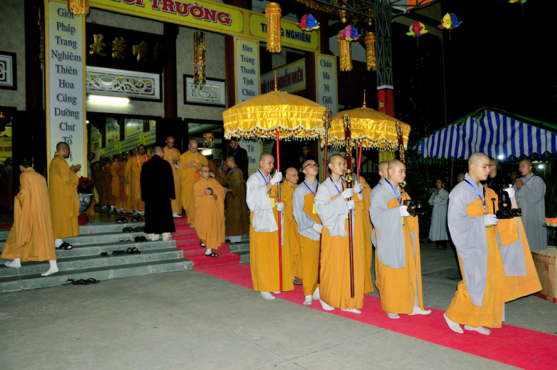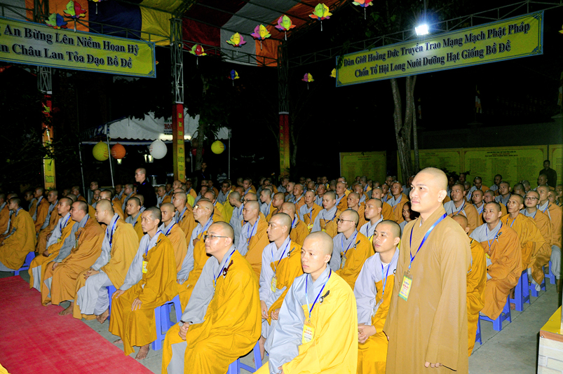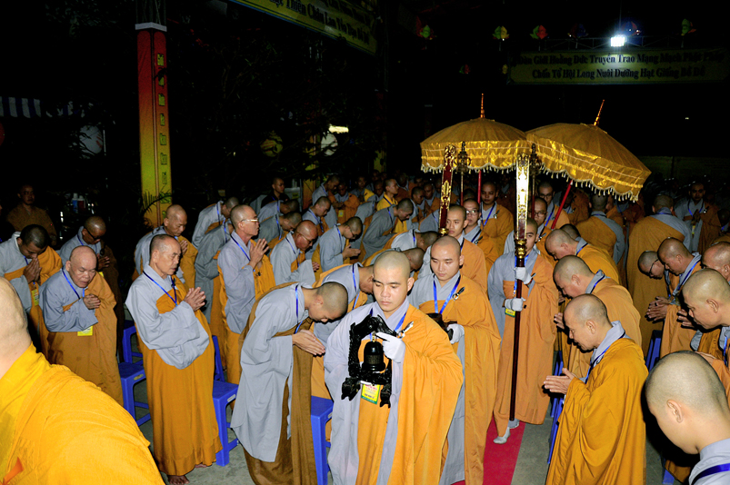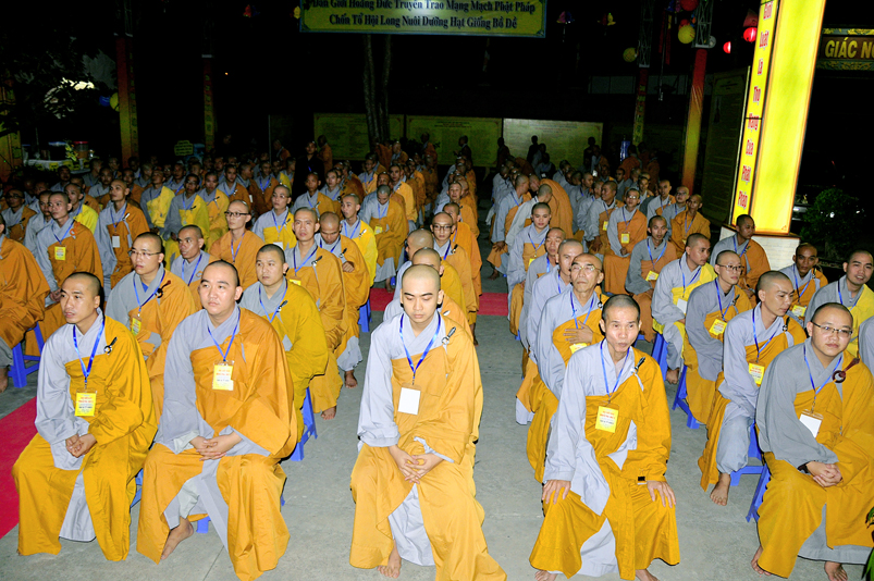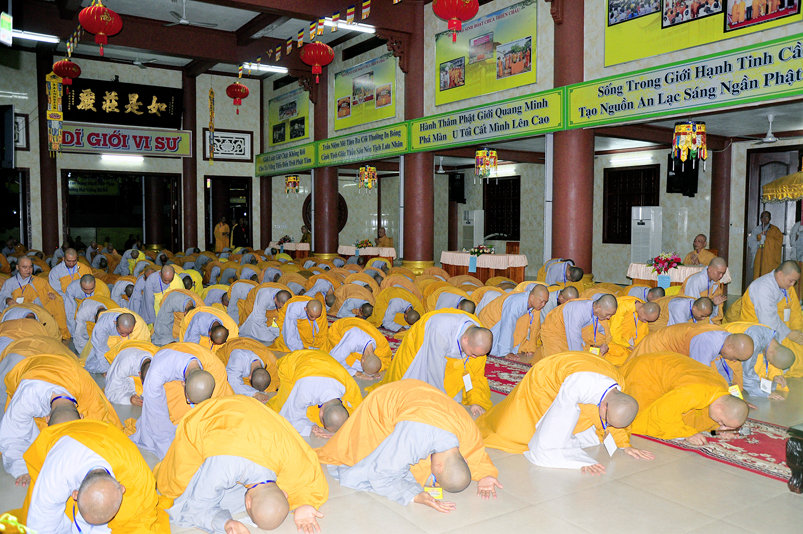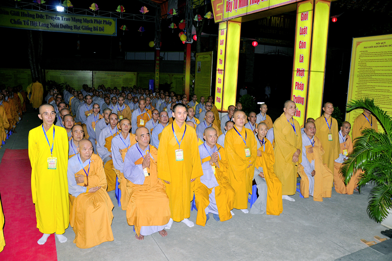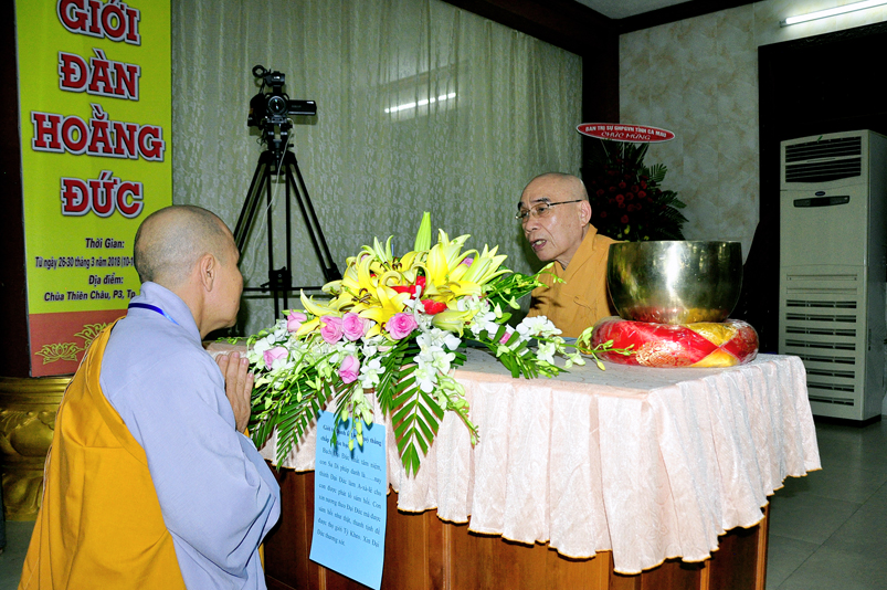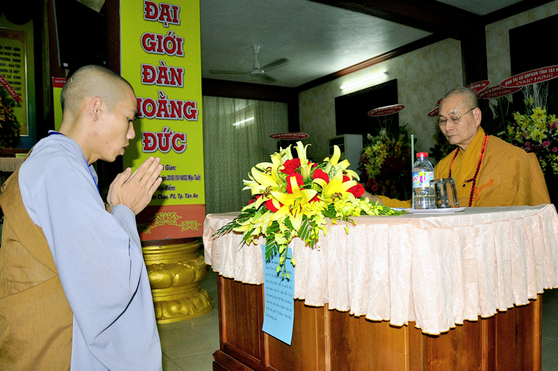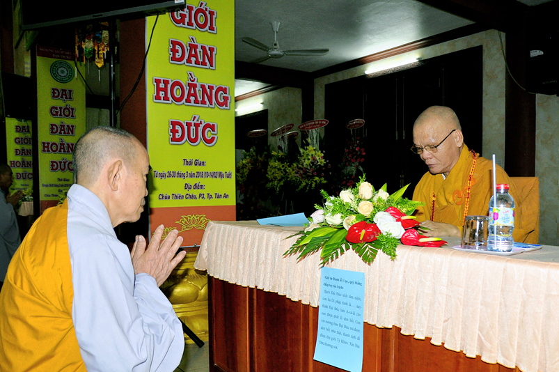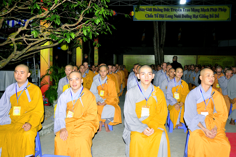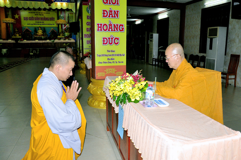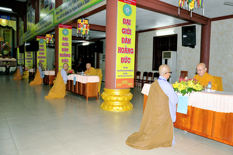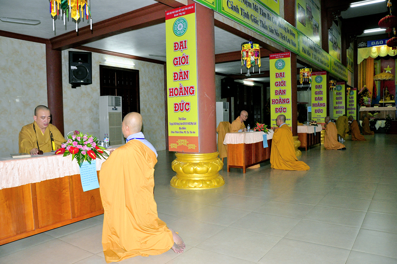 Giáo Thọ A Xà Lê dạy : ” Giới tử đã sanh tâm hổ thẹn, không che giấu, một lòng phát lồ sám hối. Nay các vị sắp đăng đàn thọ Cụ túc, cần giữ thân tâm cho thanh tịnh, để đắc giới thể. ”