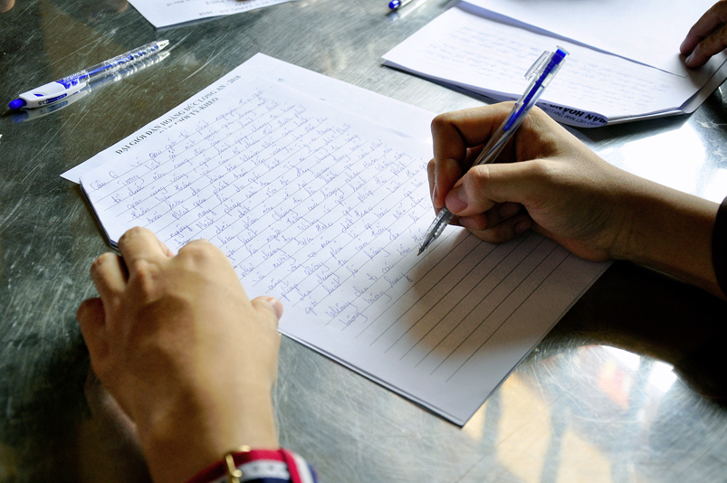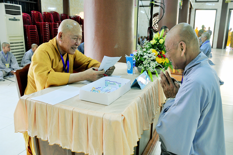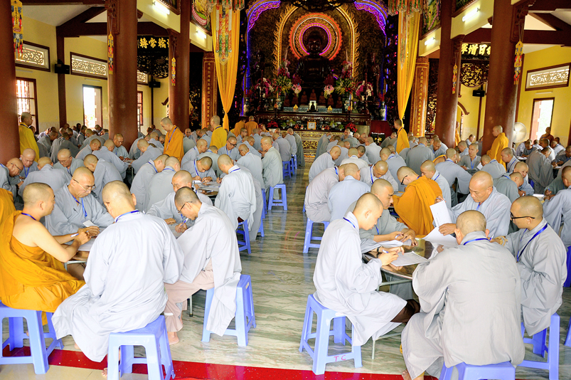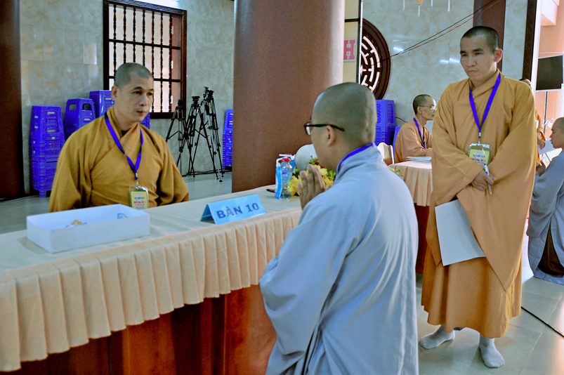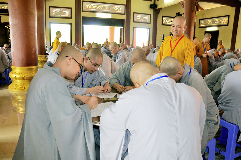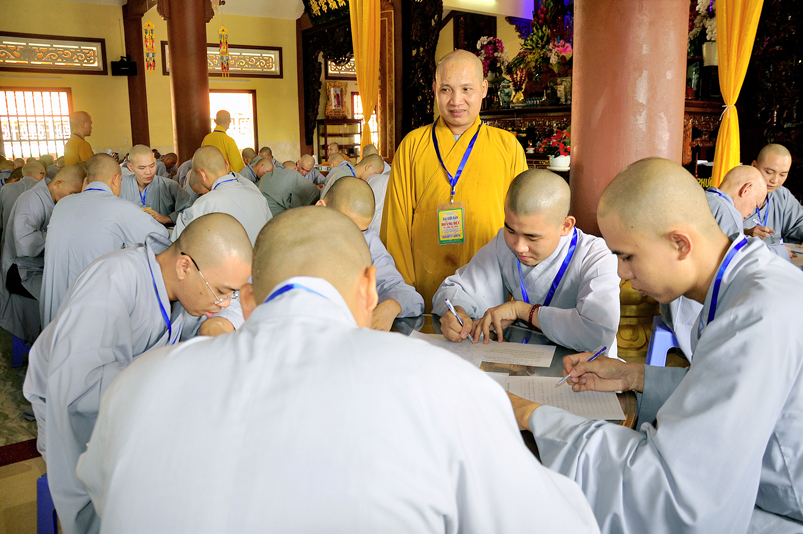 Để giúp quý giới tử có thêm động lực và yên tâm, Hòa thượng Chánh chủ khảo có lời động viên và đến các bàn thi xem giới tử làm bài. Dẫu vậy, các giới tử không sao tránh được tâm lý căng thẳng, lo lắng.