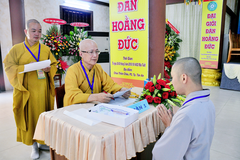Ban giám khảo, ban tổ chức cung thỉnh quý chư tôn đức có kiến thức chuyên sâu nghiên cứu Phật học. Chánh chủ khảo HT.Thích Minh Thiện, Ủy viên HĐTS, Trưởng BTS kiêm Trưởng ban Tăng sự GHPGVN tỉnh Long An, Trưởng ban Tổ chức Đại Giới Đàn Hoằng Đức và hai mươi sáu thành viên.