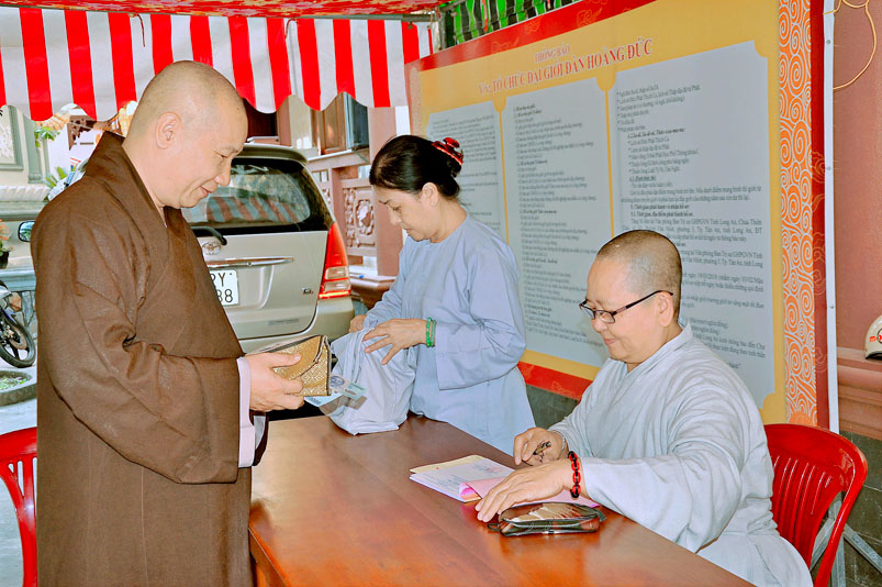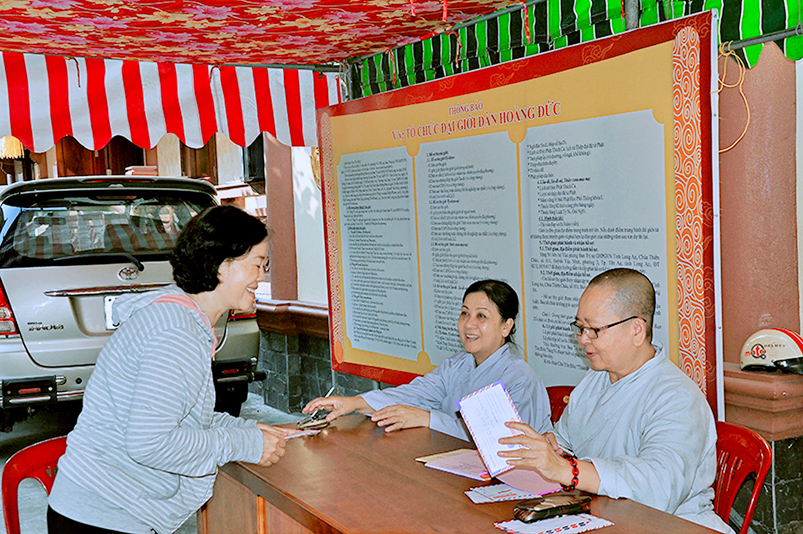 Khi đến nơi, các giới tử được Ban tổ chức ân cần hướng dẫn nơi sinh hoạt, sơ đồ giới trường và tạo điều kiện thuận lợi để quý giới tử an tâm thọ giới.
