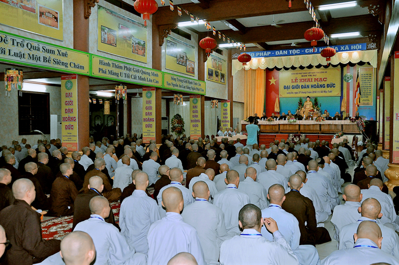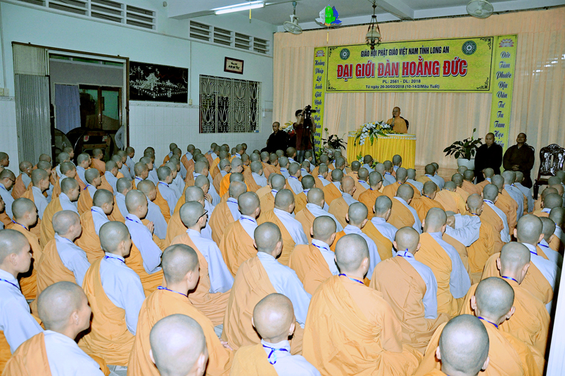 Theo chương trình tổ chức của Đại Giới Đàn Hoằng Đức do Ban Trị sự GHPGVN tỉnh Long An tổ chức. Sáng hôm nay, ngày 26 tháng 3 năm 2018 (nhằm ngày 10/02/ Mậu Tuất) hơn 800 giới tử trong và ngoài tỉnh vân tập về giới trường đúng thời gian và địa điểm mà Ban tổ chức đã qui định (Giới tử Tăng vận tập tại giới trường chùa Thiên Châu – Văn phòng Tỉnh hội Phật giáo Long An); Giới Đàn Ni tại giới trường chùa Thiên Phước – Cơ sở II, trường Trung cấp Phật học Long An).