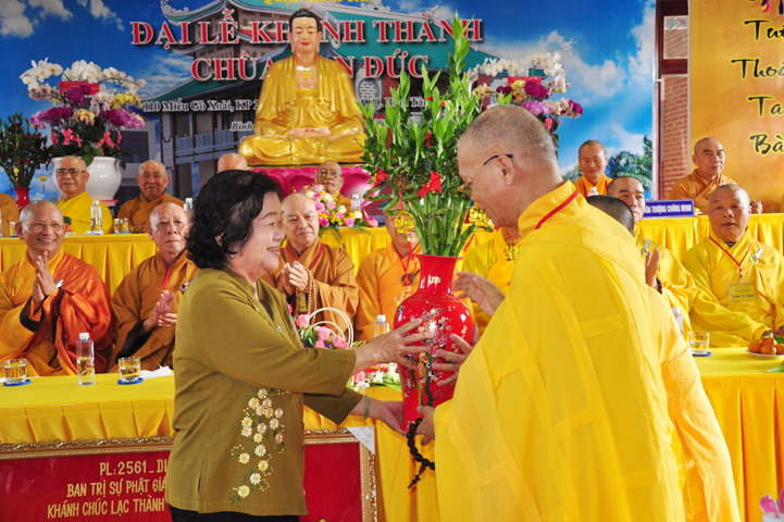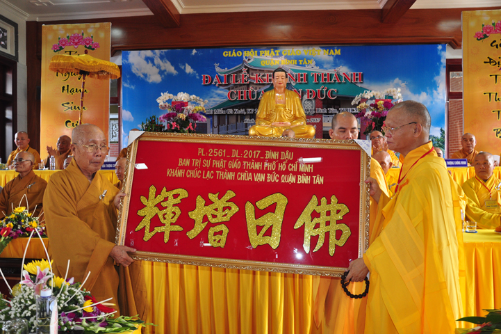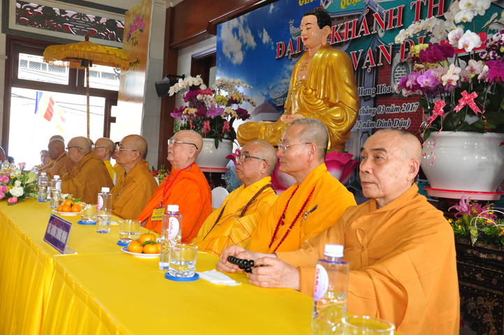 Quang lâm chứng minh có; HT. Thích Thiện Tánh – Phó Chủ tịch HĐTS, Phó trưởng Ban Thường trực BTS GHPGVN TP.HCM. HT.Thích Quang Nhuận, HT.Thích Hải Ấn – đồng UV TT HĐTS, HT. Thích Tịnh Hạnh, HT. Thích Như Tín, đồng phó Ban Trị sự PGTP.HCM cùng chư tôn giáo phẩm HĐTS, chư tôn thiền đức Tăng Ni các tình thành phố, Ban trị sự GHPGVN Q. Bình Tân, đại diện Phật giáo các quận – huyện bạn cùng đông đảo chư tôn thiền đức Tăng Ni, tông môn Pháp phái cùng quý Phật tử gần xa, lãnh đạo Đảng, Chính quyền các cấp đã đến chứng minh chú nguyện và yểm trợ.