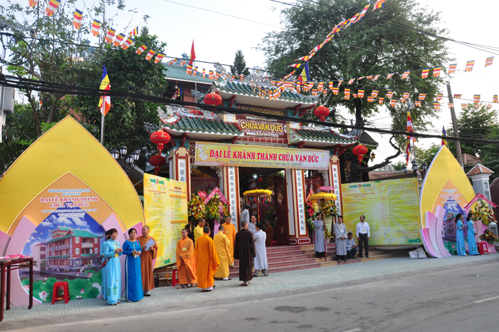 Với ý nghĩa thiêng liêng đó, năm 2000 chùa Vạn Đức đã được hình thành, trên mãnh đất 1200m2 tọa lạc tại Khu phố 23, P. Bình Hưng Hòa A, Q. Bình Tân, TP.HCM. Bước đầu chỉ là ngôi thảo am nhỏ, nhà cấp 4, trải qua 15 năm sinh hoạt và tu tập. Theo đó, vào ngày 21.03.2015 được sự cho phép của Giáo hội và chính quyền các cấp, cùng sự phát tâm của Thiện nam, tín nữ Phật tử gần xa, trong và ngoài nước, Hòa thượng Viện chủ Thích Phước Toàn cảm thấy nhân duyên hội đủ, cần phải trùng tu ngôi chánh điện, để trang nghiêm điện Phật, tiếp tăng độ chúng, giáo hóa tín đồ trở về tu tâm, hành thiện nhằm góp phần vào công tác Phật sự chung của Phật giáo để trưởng dưỡng đạo tâm – Trang nghiêm giáo hội. Sau 2 năm chư tăng và Phật tử chùa Vạn Đức đã nỗ lực không ngừng nghỉ thi công xây dựng ngôi phạm vũ nay đã thành tựu viên mãn.