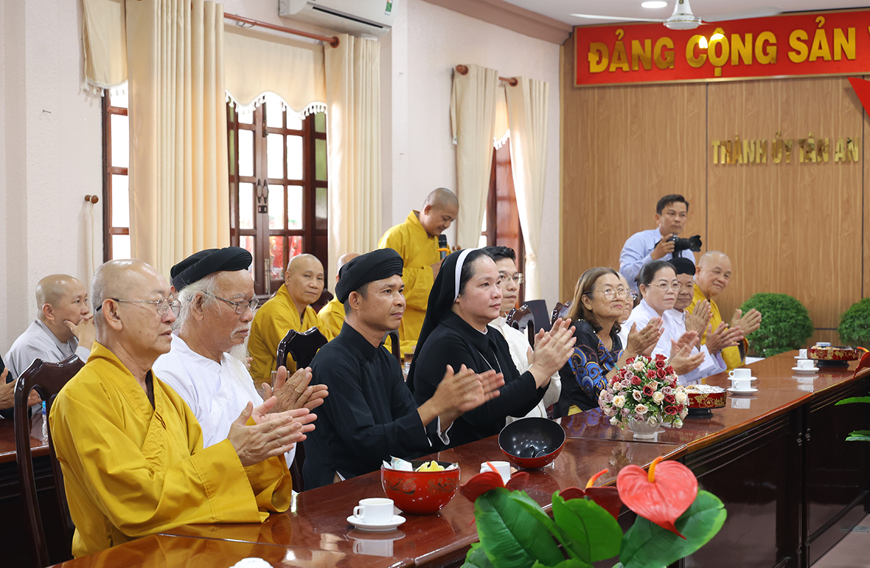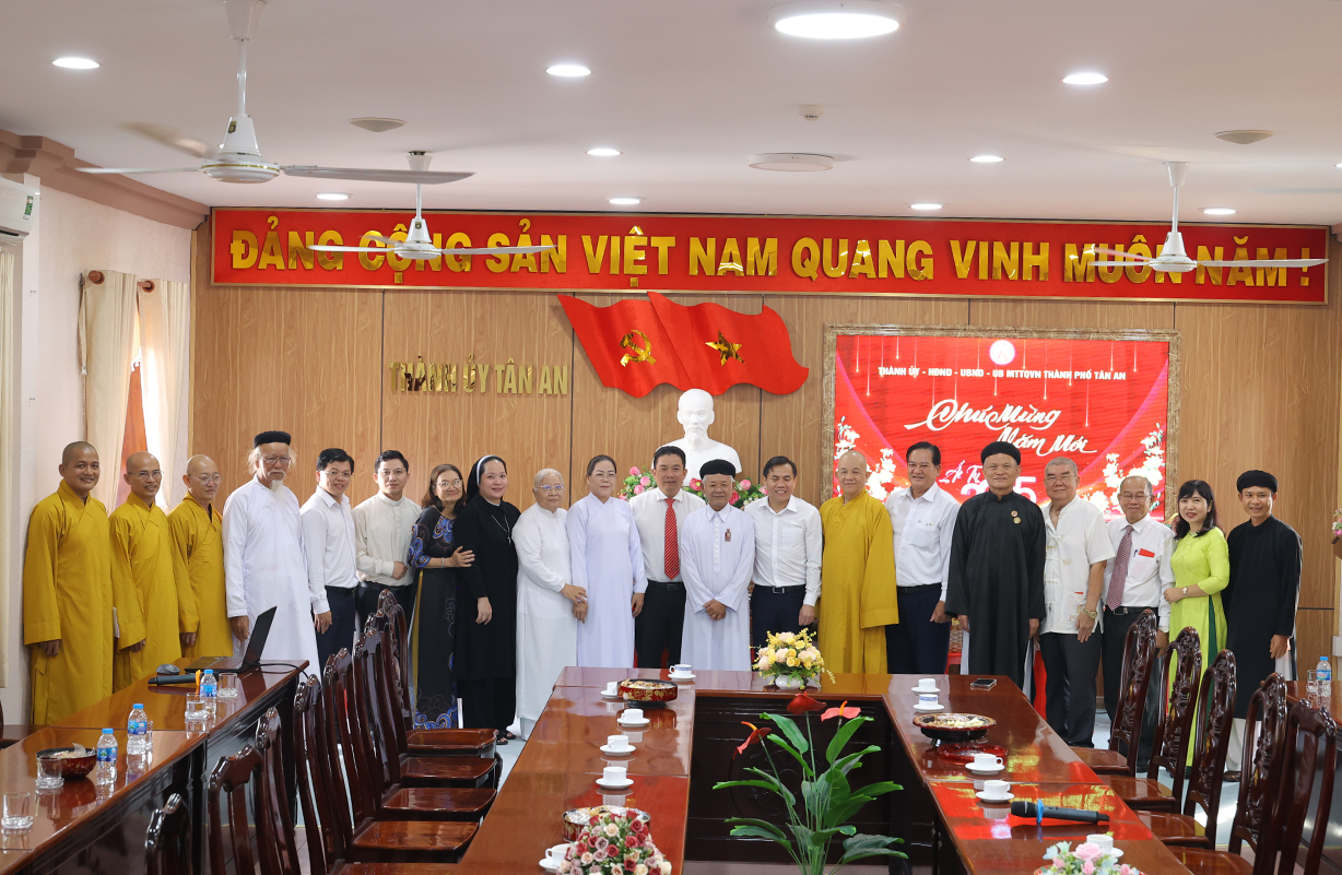 Đoàn chức sắc Tôn giáo – Dân tộc gồm: Ban Trị sự Giáo hội Phật giáo Việt Nam tỉnh Long An; Ủy ban Đoàn kết Công giáo Việt Nam tỉnh Long An; Hội Dòng mến Thánh giá Mỹ Tho tại tỉnh Long An; Ban đại diện Hội thánh Tin lành Việt Nam (MN) tỉnh Long An; Ban đại diện Hội thánh Cao đài Tây Ninh tỉnh Long An; Ban đại diện Hội thánh Cao đài Ban Chỉnh Đạo tỉnh Long An; Ban đại diện Hội thánh Cao đài Tiên Thiên tỉnh Long An; Ban đại diện Hội thánh Cao đài Chơn Lý tỉnh Long An; Ban trị sự Tịnh độ Cư sĩ Phật hội Việt Nam tỉnh Long An; Ban đại diện Phật giáo Hòa Hảo tại tỉnh Long An; Minh Lý Đạo – Tam Tông Miếu Long An; Đại diện cộng đồng người Hoa Thành phố Tân An. Ông Lê Công Đỉnh – Ủy viên Ban Thường vụ Tỉnh ủy, Bí thư Thành ủy, Chủ tịch HĐND thành phố Tân An tiếp đoàn.