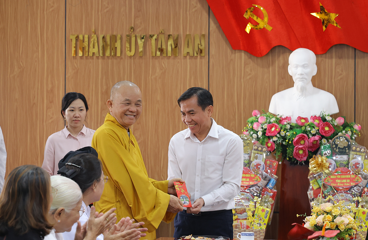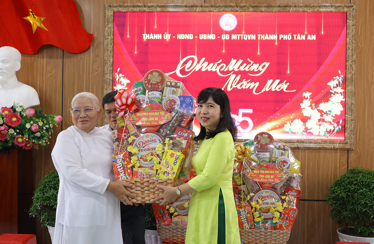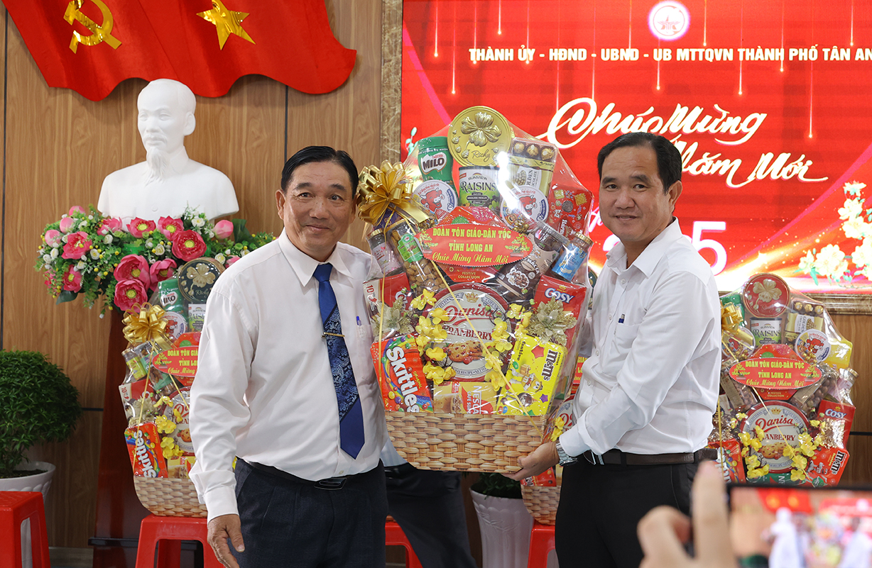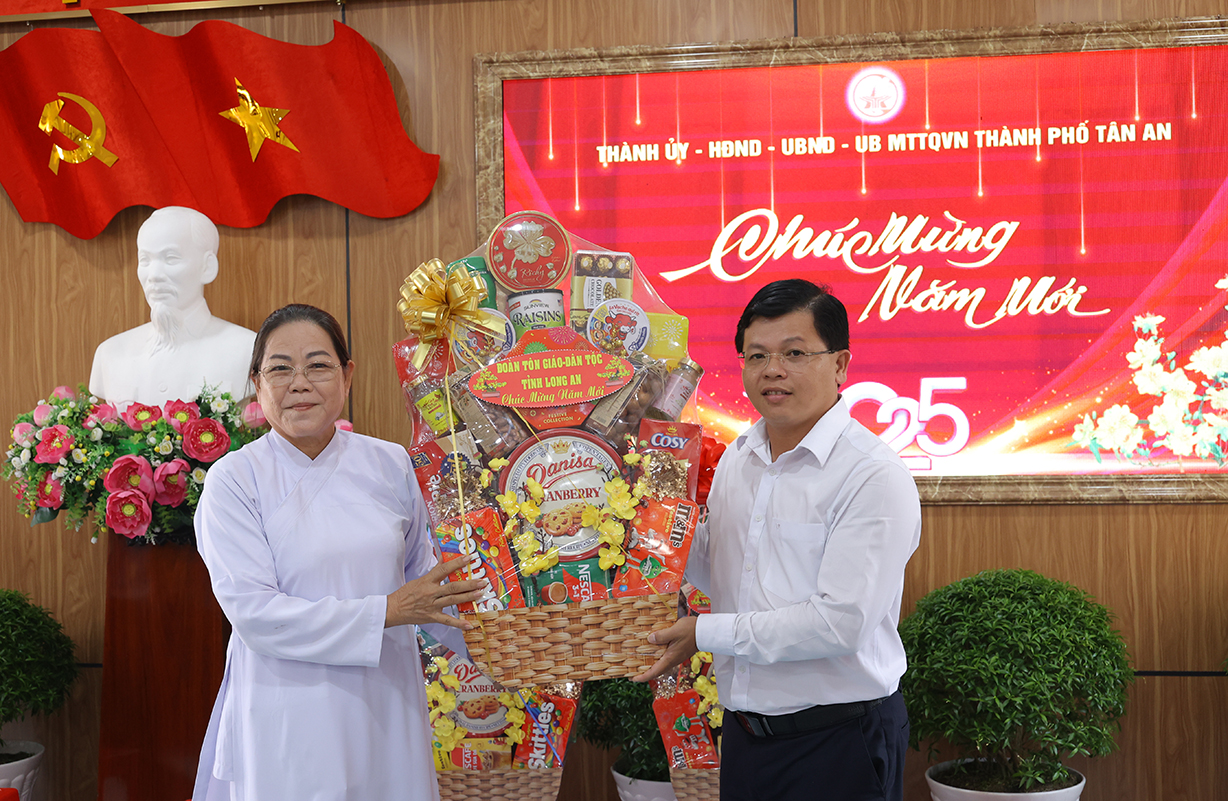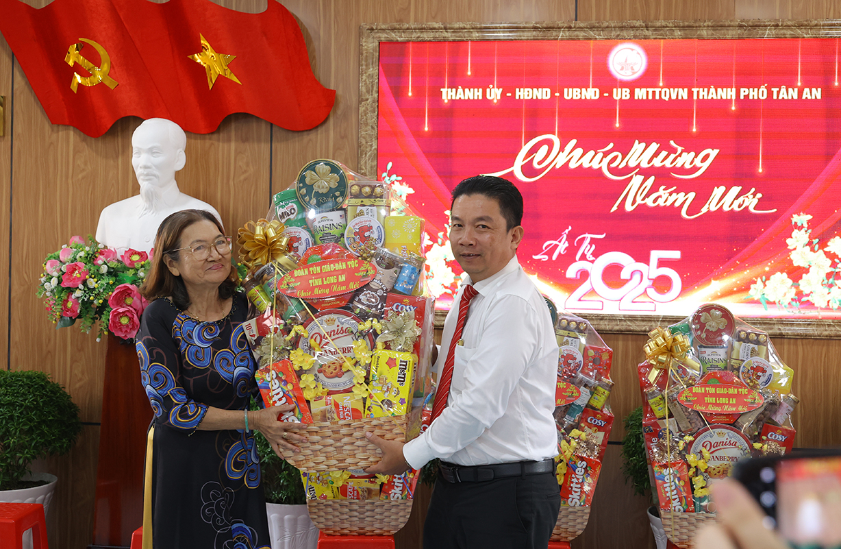Chiều ngày 21/01/2025, Đoàn chức sắc Tôn giáo – Dân tộc đến thăm, chúc tết Thành uỷ, HĐND, UBND, UBMTTQ Việt Nam thành phố Tân An, Ban Dân vận Thành uỷ, Phòng Nội vụ thành phố.