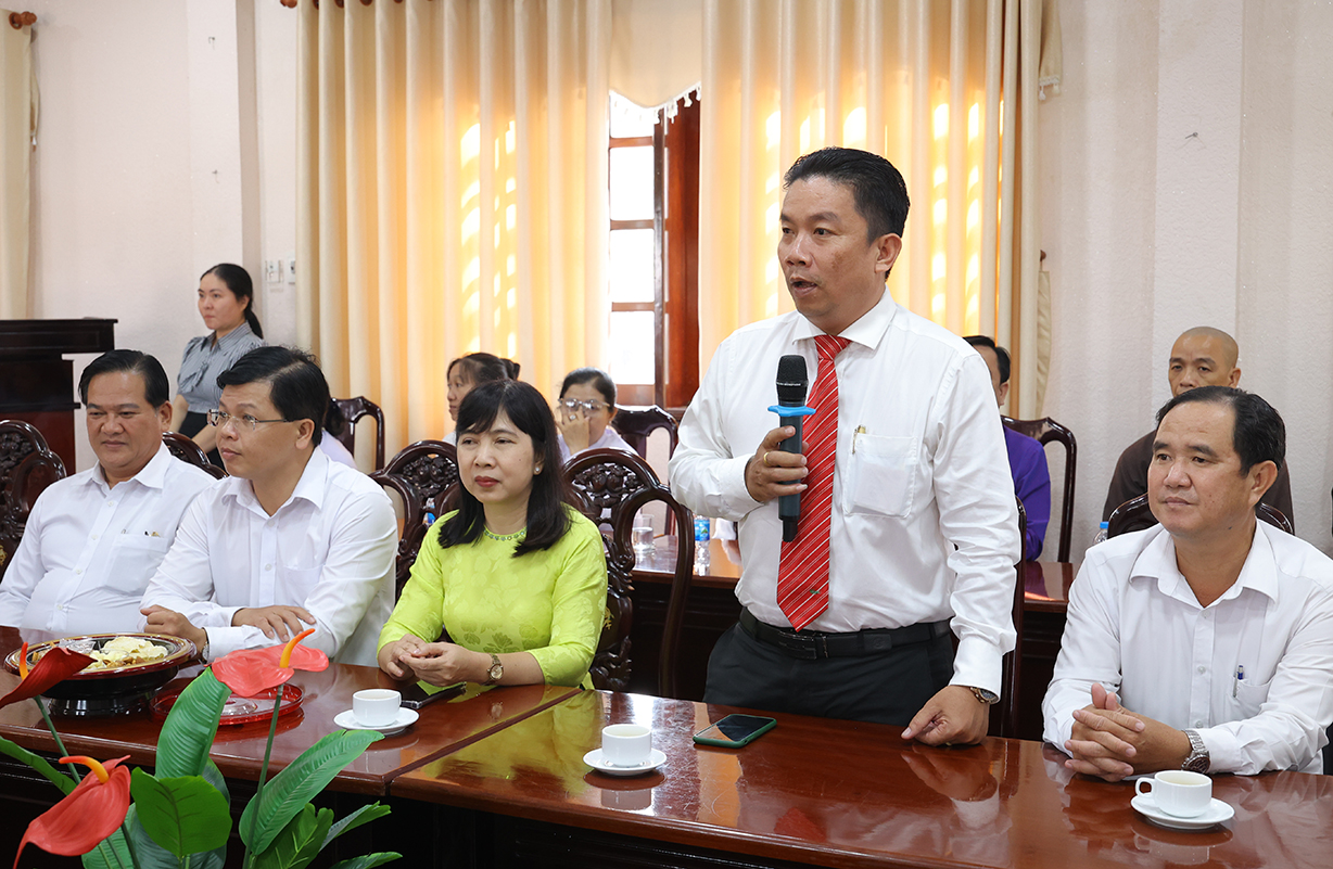 Ông Lê Công Đỉnh – Ủy viên Ban Thường vụ Tỉnh ủy, Bí thư Thành ủy, Chủ tịch HĐND thành phố Tân An thông tin về những thành quả đã đạt của thành phố trong năm qua; đồng thời, đánh giá cao và ghi nhận sự đóng góp của các tổ chức tôn giáo đã cùng Đảng bộ, chính quyền thành phố trong phát triển kinh tế – văn hóa – xã hội, đảm bảo quốc phòng an ninh, nhất là thực hiện các hoạt động chăm lo đời sống người dân có hoàn cảnh khó khăn. Trong thời gian tới, ông mong muốn đồng bào tôn giáo – dân tộc tiếp tục chung tay, đồng thuận, đồng lòng cùng xây dựng thành phố Tân An ngày càng phát triển.