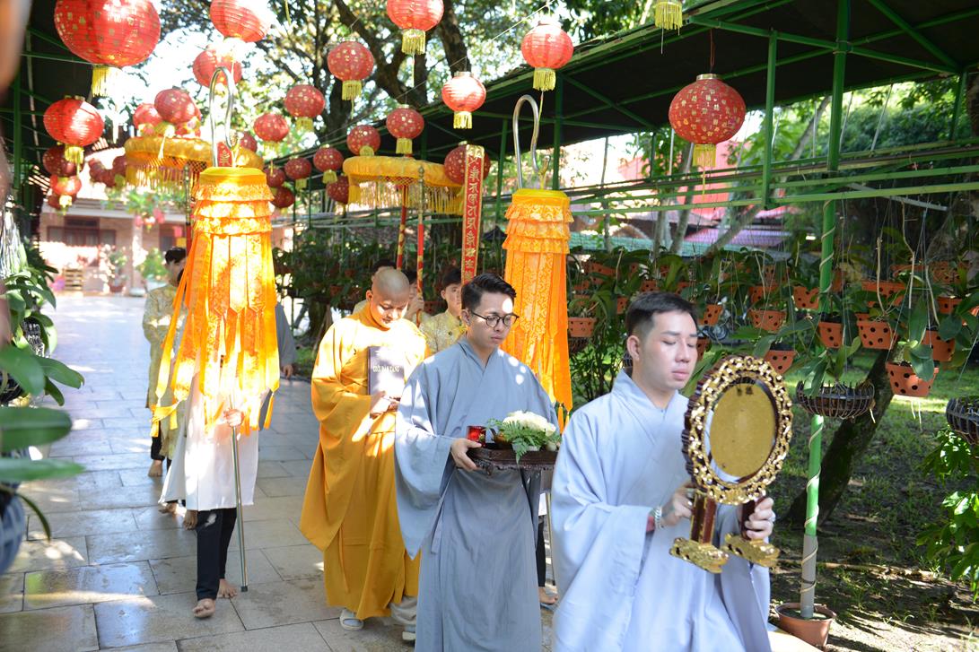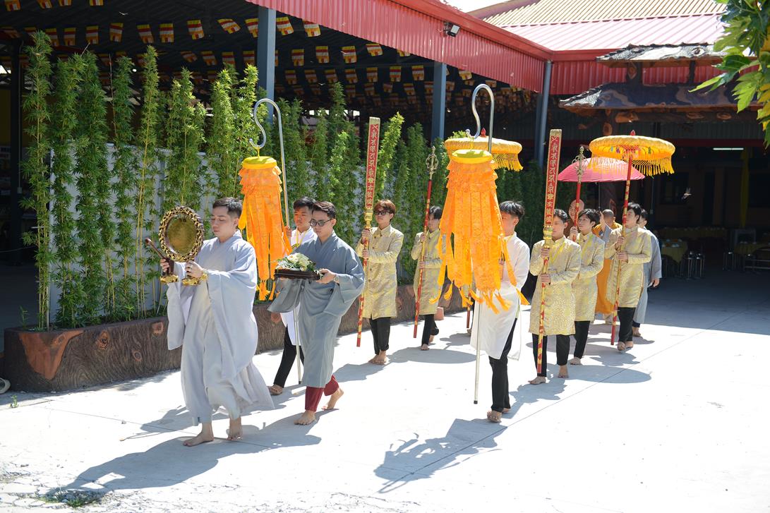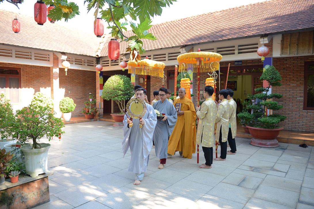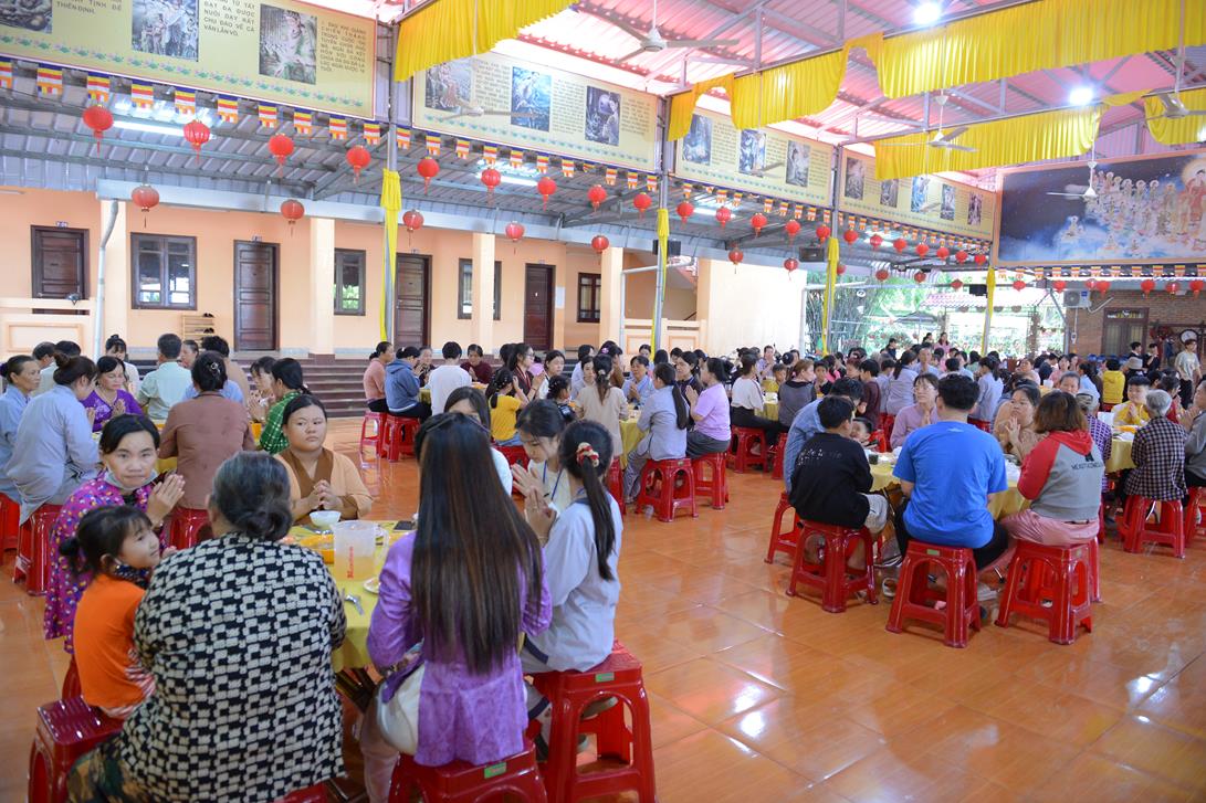 Cuối cùng là nghi thức Quá Đường (ăn trưa theo nghi thức thiền môn) và kinh hành niệm Phật.