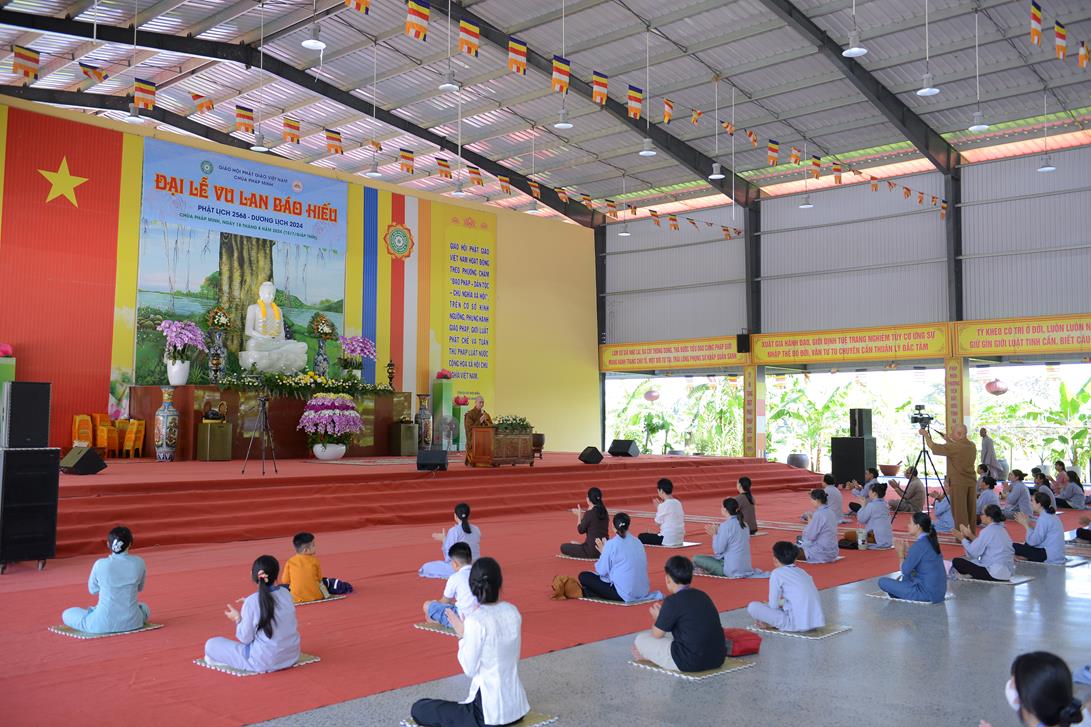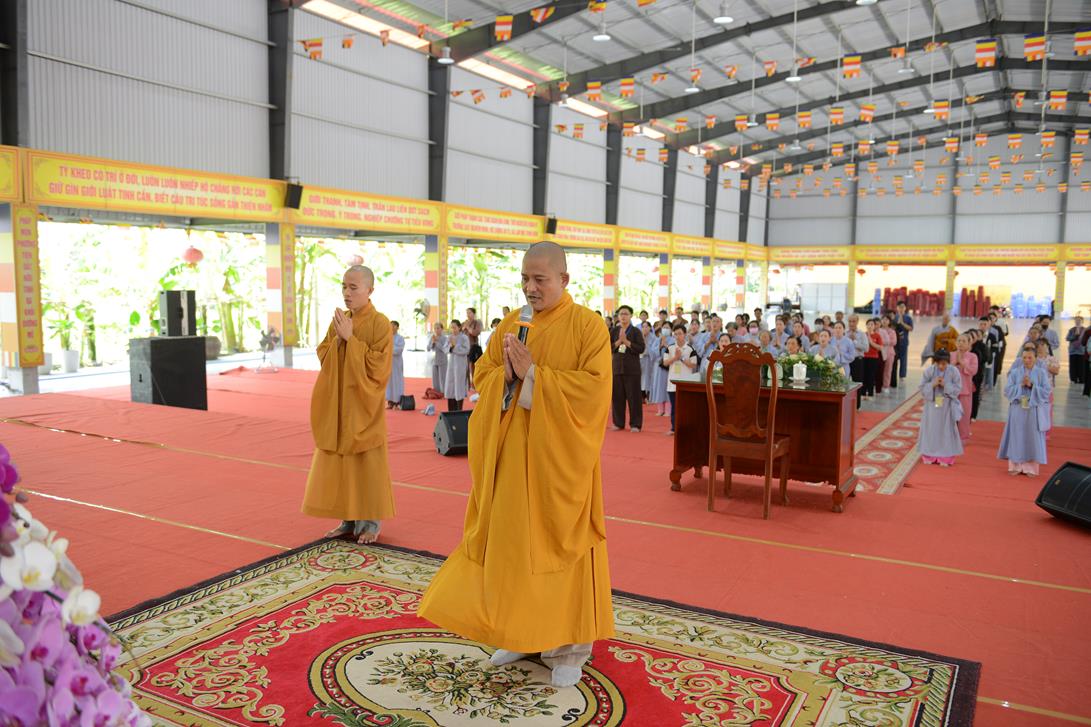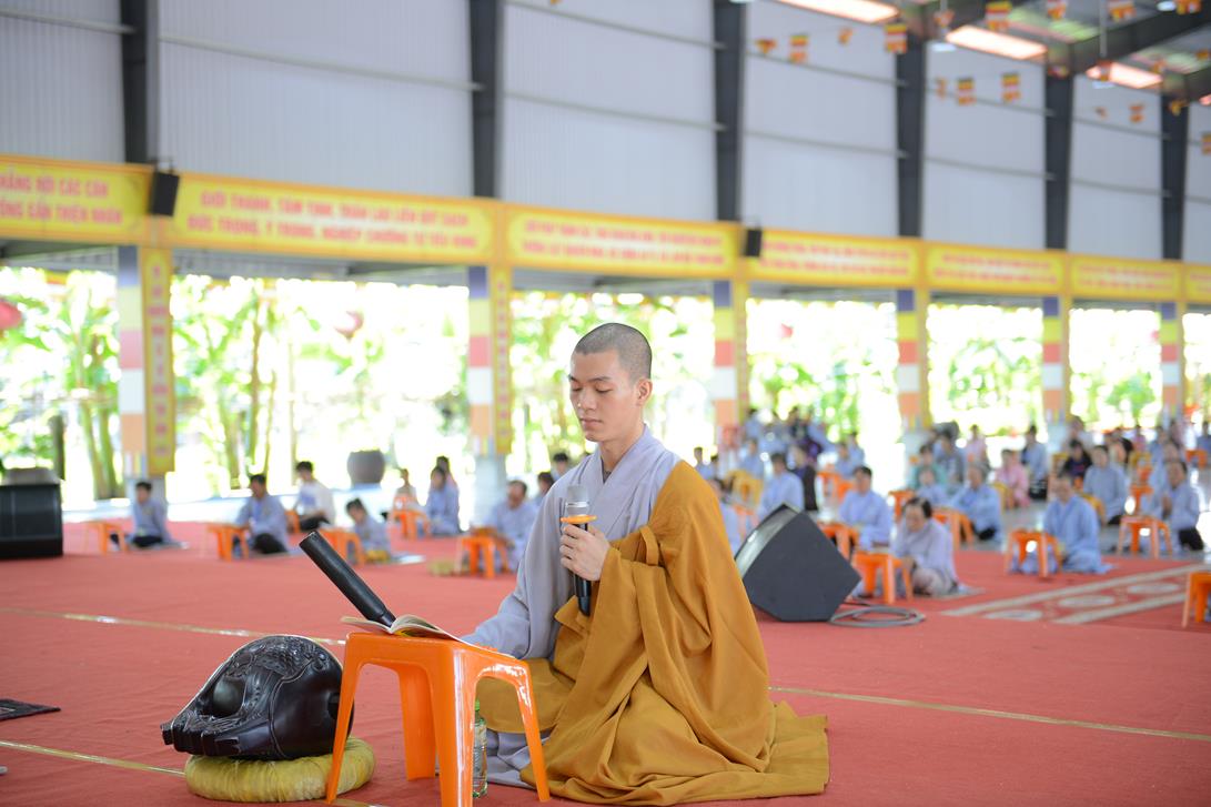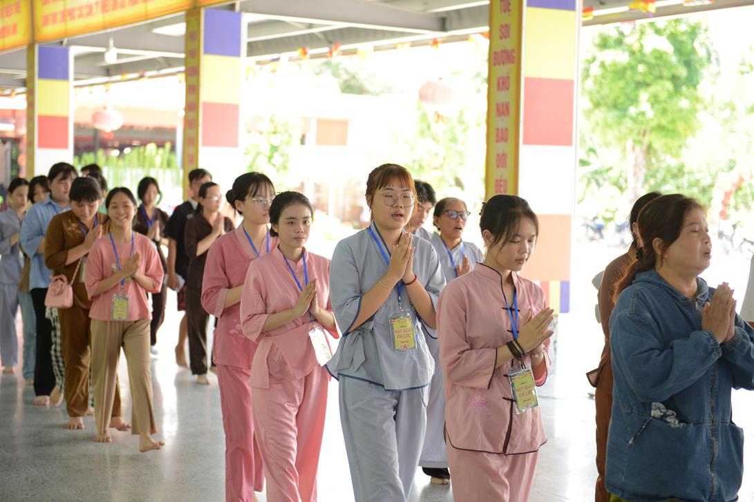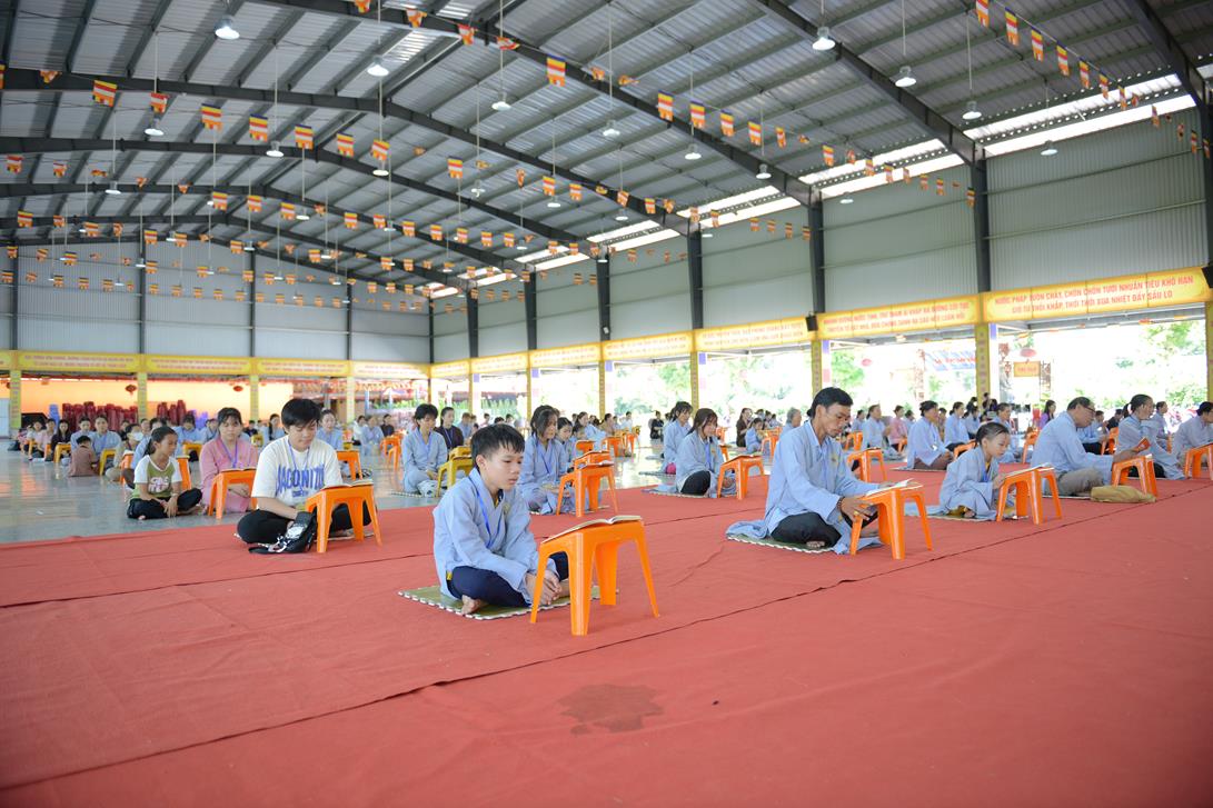 Khoá tu được bắt đầu là Lễ Quy Y Tam Bảo cho 47 vị do Đại đức Thích Lệ Duyên, Phó Trưởng ban kiêm Chánh Thư ký Ban Trị sự GHPGVN tỉnh Long An, Trưởng ban Trị sự GHPGVN huyện Đức Hòa, Trưởng ban Tổ chức khóa tu truyền giới. Tiếp đó là thời khoá tụng kinh Vu Lan Báo Hiếu dưới sự hướng dẫn Chư Tăng chùa Pháp Minh.