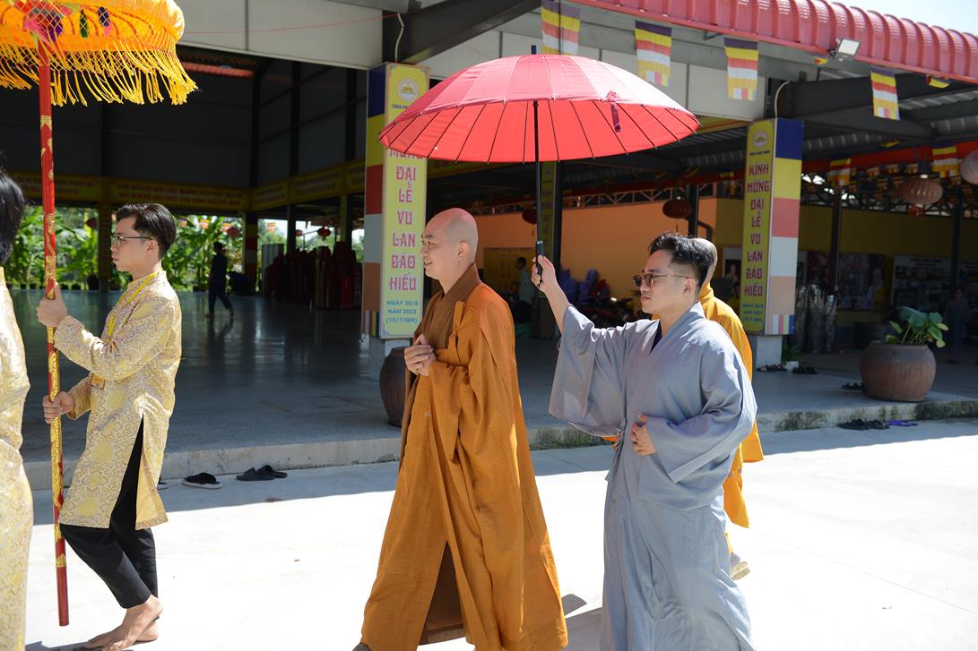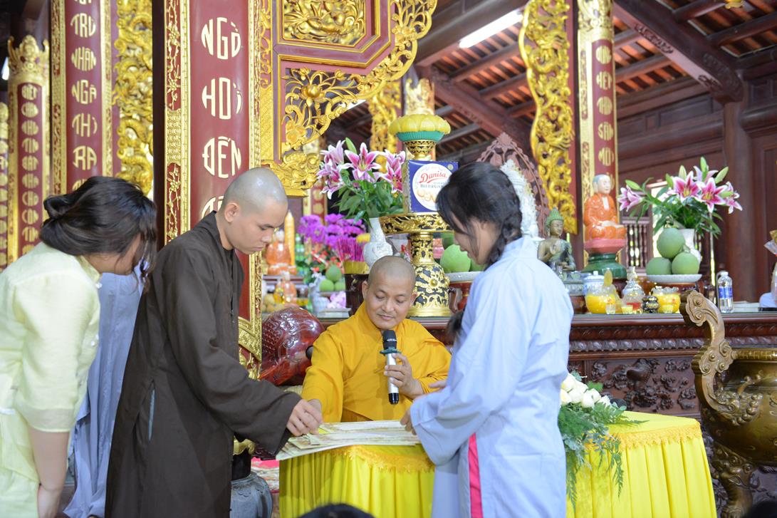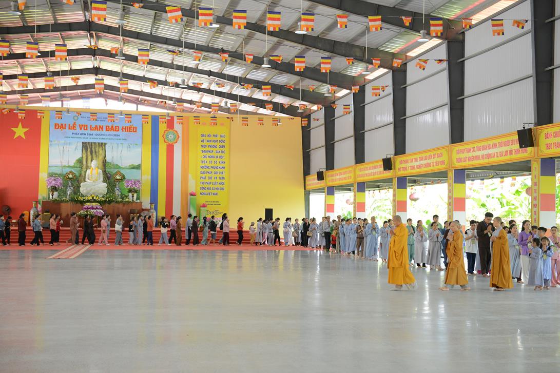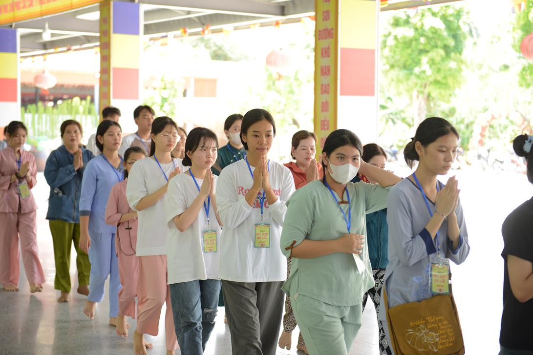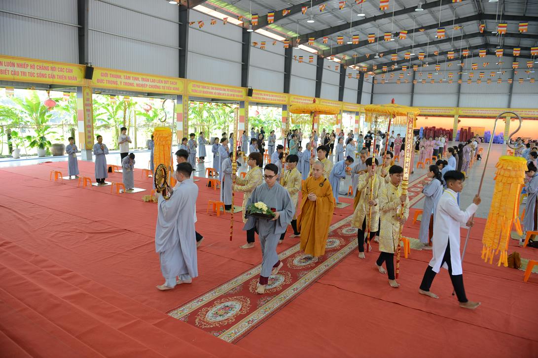 Khoá tu được bắt đầu là Lễ Quy Y Tam Bảo cho 47 vị do Đại đức Thích Lệ Duyên, Phó Trưởng ban kiêm Chánh Thư ký Ban Trị sự GHPGVN tỉnh Long An, Trưởng ban Trị sự GHPGVN huyện Đức Hòa, Trưởng ban Tổ chức khóa tu truyền giới. Tiếp đó là thời khoá tụng kinh Vu Lan Báo Hiếu dưới sự hướng dẫn Chư Tăng chùa Pháp Minh.