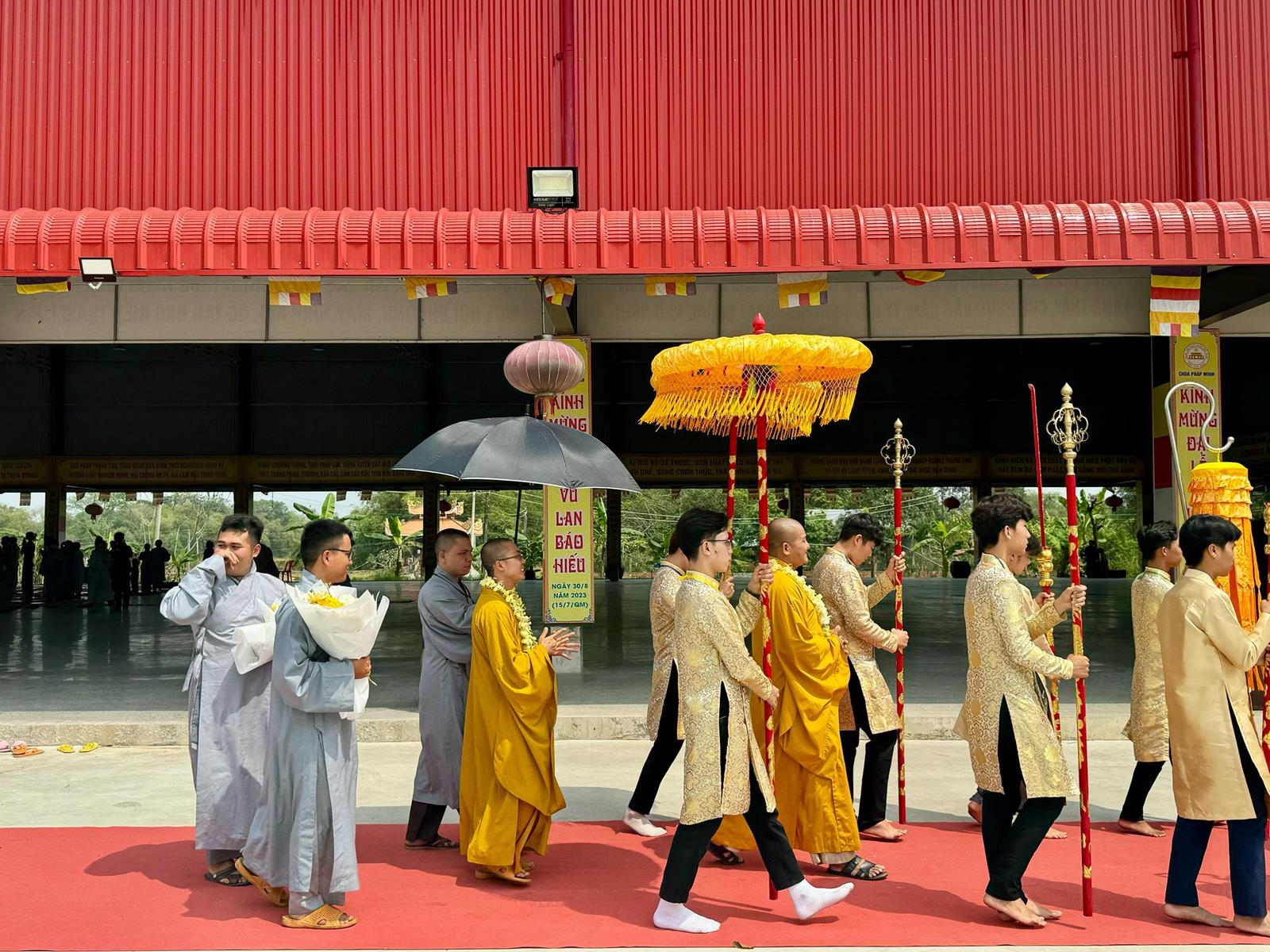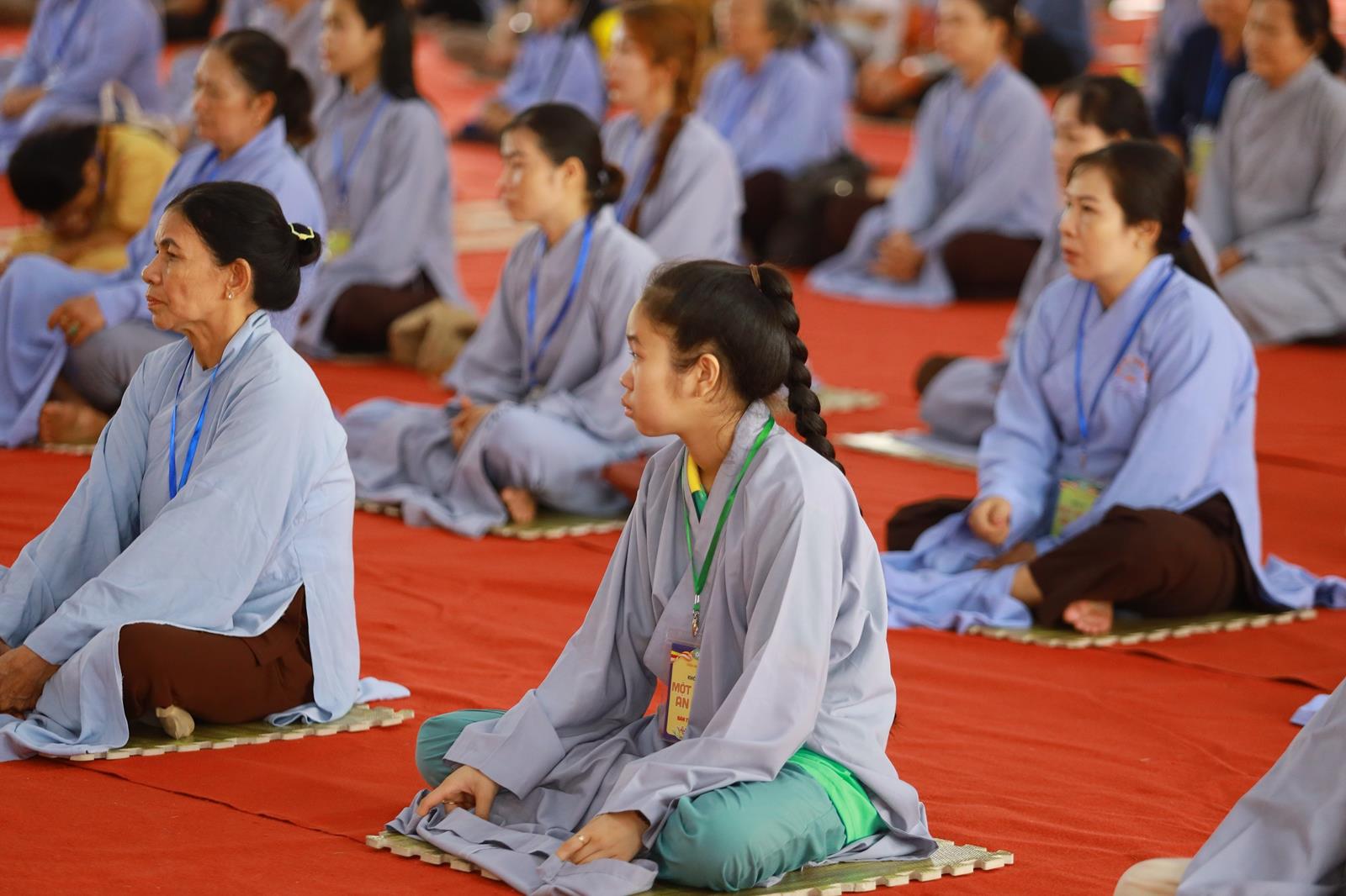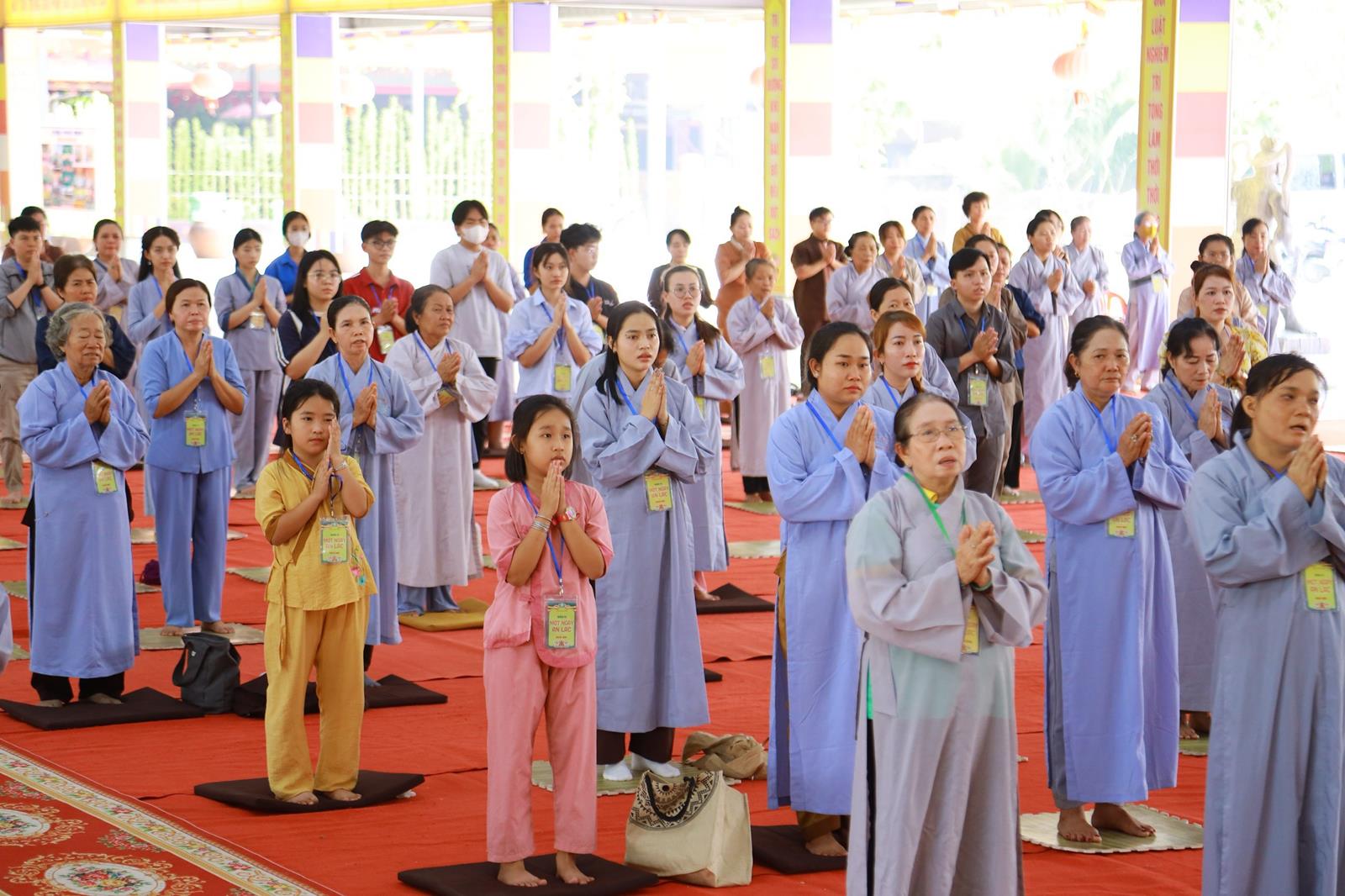 Sau khi cung thỉnh Đại đức giảng sư Thích Khải Tuấn hồi quy phương trượng, các khóa sinh tiếp tục thực hiện nghi lễ cúng ngọ. Sau đó khóa sinh vân tập về quá đường để thọ trai. Đại đức Thích Lệ Duyên – Phó Trưởng Ban kiêm Chánh Thư ký BTS GHPGVN tỉnh Long An, Trưởng BTS GHPGVN huyện Đức Hòa, Trưởng BTC khóa tu đã trực tiếp hướng dẫn các khóa sinh về các thời khóa tu tập, tụng niệm, nghi thức quá đường, kinh hành niệm Phật,…