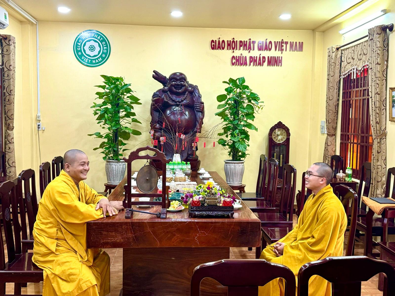Khóa tu ngày an lạc lần 5 của chùa Pháp Minh cung nghinh Đại đức giảng sư Thích Khải Tuấn – UV Thường trực Ban Hướng dẫn Phật tử TƯ GHPGVN, Giáo thọ Thiền Viện Trúc Lâm Phú Yên quang lâm Giảng đường có thời pháp thoại đến các khóa sinh. Đại đức đã giành thời gian cùng các khóa sinh trò chuyện về tâm từ bi, cách hóa giải lòng hận thù và ích kỷ, cũng như nhắc về tầm quan trọng của giá trị sống đến các khóa sinh. Sau thời pháp thoại, Đại đức giao lưu đến các khóa sinh đặt câu hỏi và trao những phần lộc đầu xuân. Sau thời pháp thoại, Đại đức còn giành thời gian để trò chuyện, chia sẻ kinh nghiệm phụng sự với các thành viên Ban Phụng sự Chùa Pháp Minh.