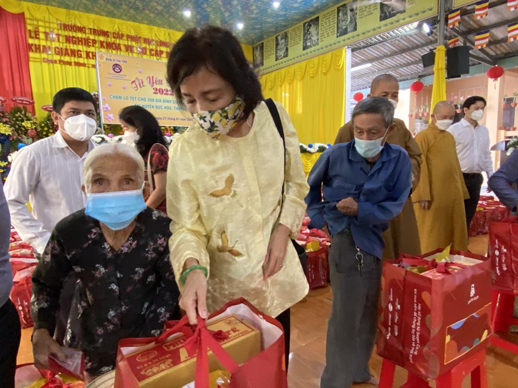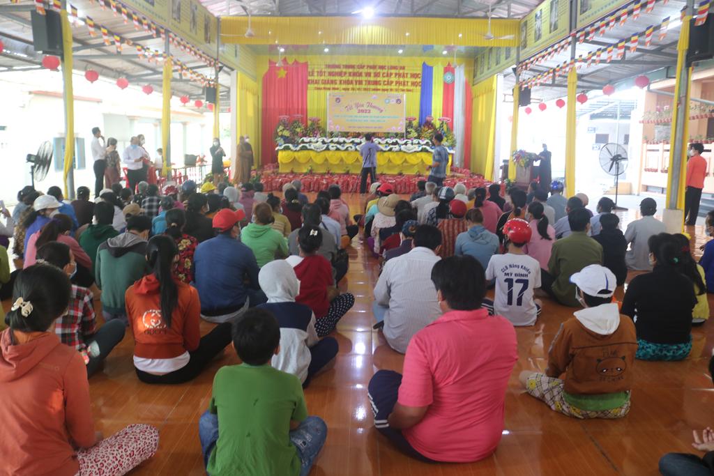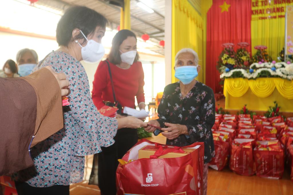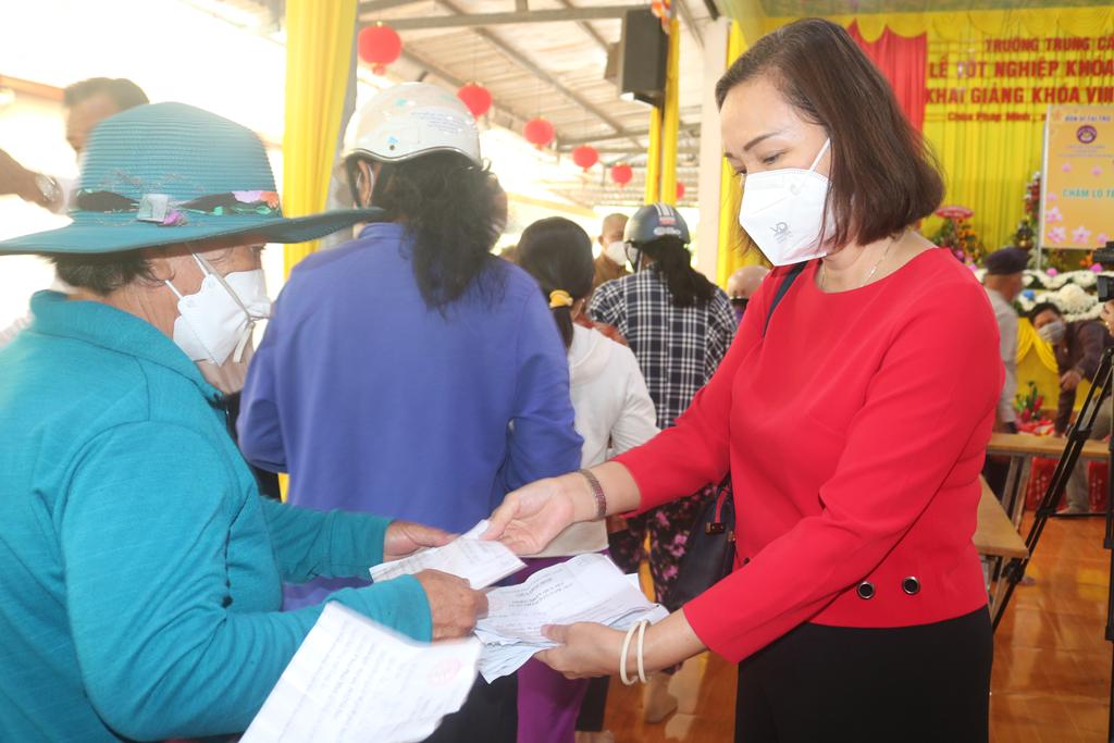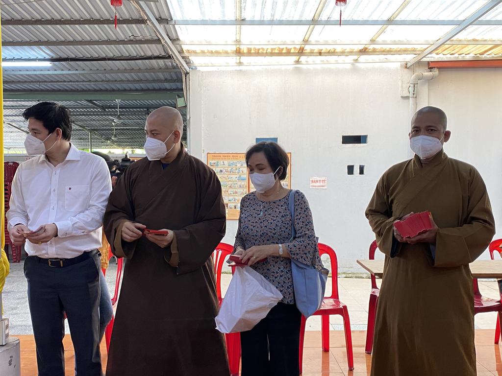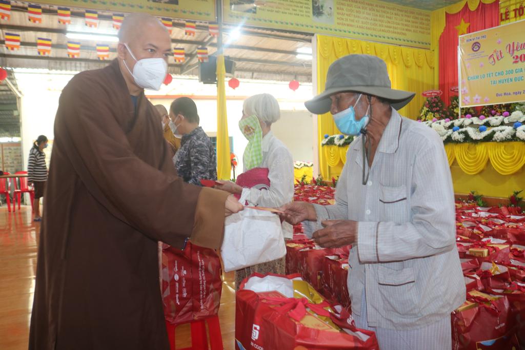 Tham dự lễ trao quà có Hòa thượng Thích Minh Thiện, Ủy viên Hội đồng Trị sự, Phó Trưởng ban Hoằng pháp TƯ, Trưởng ban Trị sự GHPGVN tỉnh Long An; Đại đức Thích Quảng Lâm, Ủy viên Hội đồng Trị sự, Chủ nhiệm Lớp Sơ cấp Phật học Long An; Đại đức Thích Lệ Duyên, Chánh Thư ký BTS GHPGVN tỉnh Long An, Trưởng ban Trị sự GHPGVN huyện Đức Hòa, đồng Chủ nhiệm Lớp SCPHLA và đại diện nhóm Từ thiện “Chia sẻ-Sharing” của Bà Mai Thị Hạnh, Phu nhân Nguyên Chủ tịch nước Trương Tấn Sang, gia đình cô Trương Minh Tuyết…