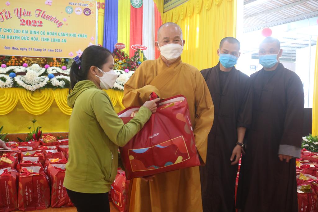 Sáng ngày 21/01/2022 (nhằm ngày 19/12/Tân Sửu) chùa Pháp Minh, ấp Giồng Lớn, xã Mỹ Hạnh Nam, huyện Đức Hòa, tỉnh Long An trao tặng 300 phần quà cho đồng bào có hoàn cảnh khó khăn tại huyện Đức Hòa vui xuân đón tết Nhâm Dần năm 2022.