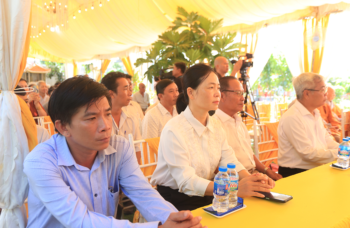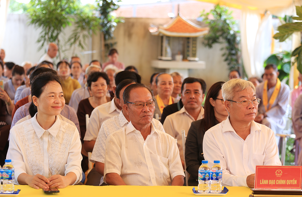 Về phía lãnh đạo chính quyền có bà Nguyễn Thị Thuý Ngọc – Phó Ban Dân tộc, tôn giáo Sở Nội vụ tỉnh; ông Lương Trường Thắm – Đại diện Ban Dân vận tỉnh uỷ; ông Lâm Chí Thanh – Phó Phòng Công an Nội địa tỉnh Long An; cùng lãnh đạo các cấp chính quyền sở tại tham dự.