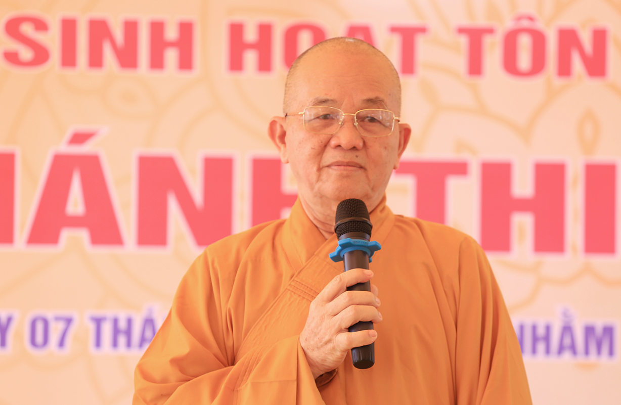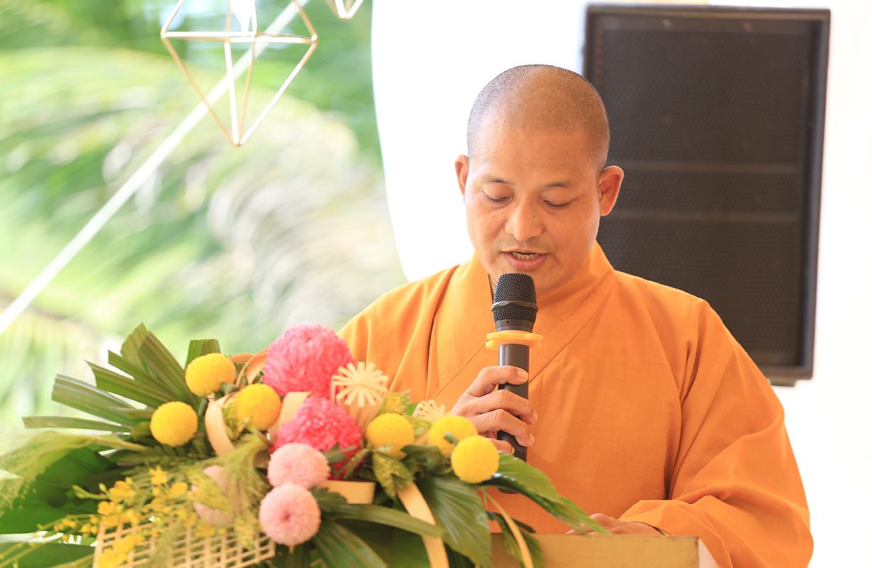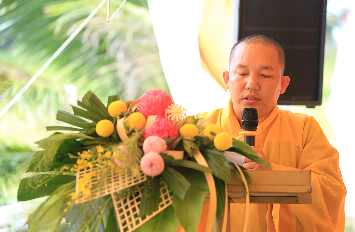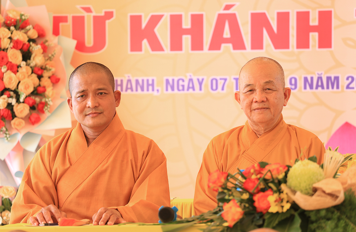 Tại buổi lễ, Hòa thượng Thích Minh Thiện đãi lao Chư tôn Hoà thượng chứng minh ban lời đạo từ. Hoà thượng đã chia sẻ về những giá trị truyền thống tốt đẹp của Phật giáo trong suốt chiều dài lịch sử là luôn gắn liền với dân tộc. Hoà thượng nhấn mạnh rằng Phật giáo Long An nói chung và Phật giáo huyện Đức Huệ ngày nay (trước kia là Phật giáo liên huyện Đức Hoà – Đức Huệ) nói riêng đã có những đóng góp tích cực cho sự phát triển của Giáo hội và cho cộng đồng. Hòa thượng cũng bày tỏ mong muốn người đại diện điểm nhóm sinh hoạt tôn giáo tập trung và Phật tử tại đạo tràng Từ Khánh Thiền Lâm nỗ lực cùng Phật giáo địa phương phát triển đạo tràng, đồng thời phối hợp với chính quyền duy trì an ninh trật tự, hướng dẫn tín đồ sống theo tinh thần lời Phật dạy và tuân thủ pháp luật. Hoà thượng cũng gửi lời tri ân đến chính quyền địa phương vì đã tạo điều kiện thuận lợi để Phật sự đạt được thành tựu. Cuối cùng, Hòa thượng nhắc nhở mọi người ý thức chung tay phát triển quê hương, đất nước, và mong muốn mọi người thực hiện nhiệm vụ này với sự nhiệt tình.