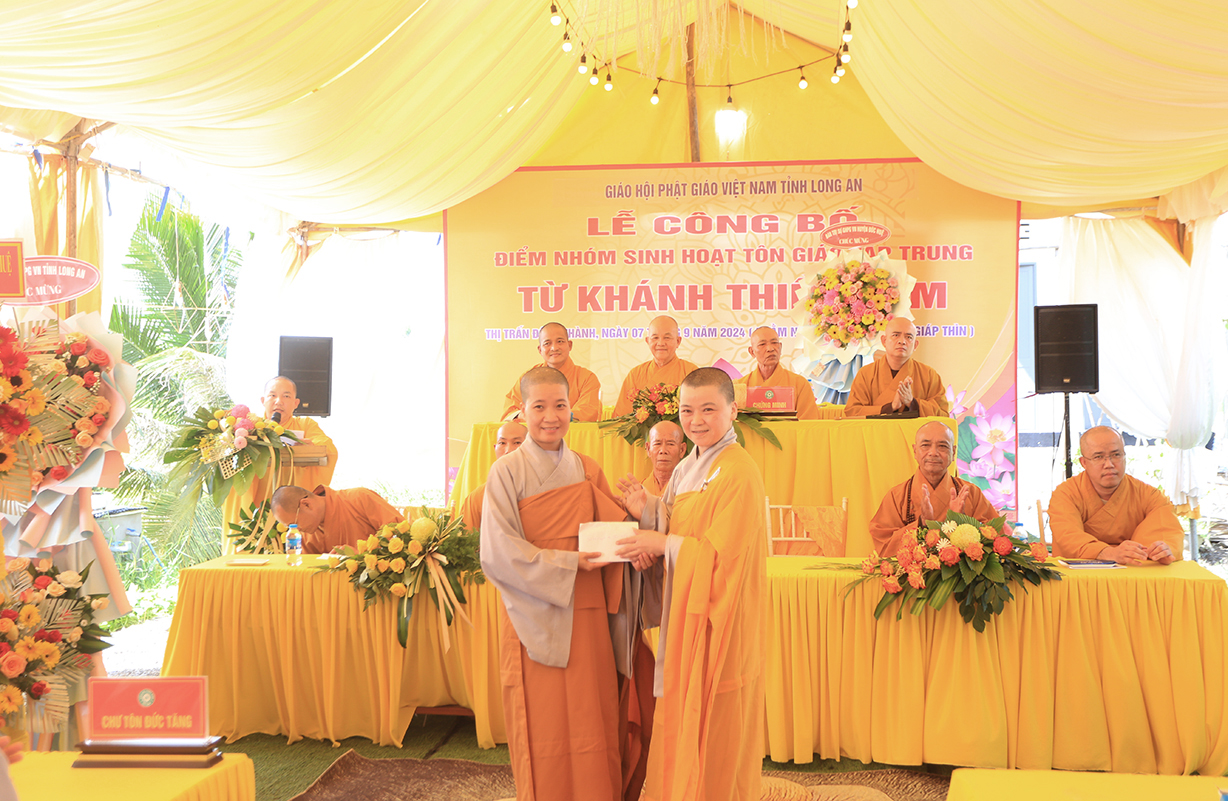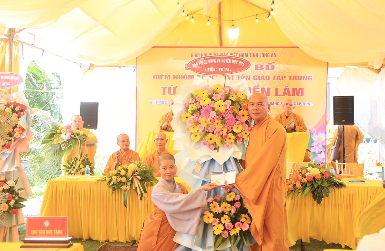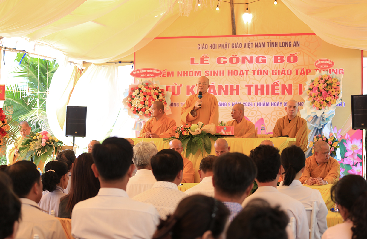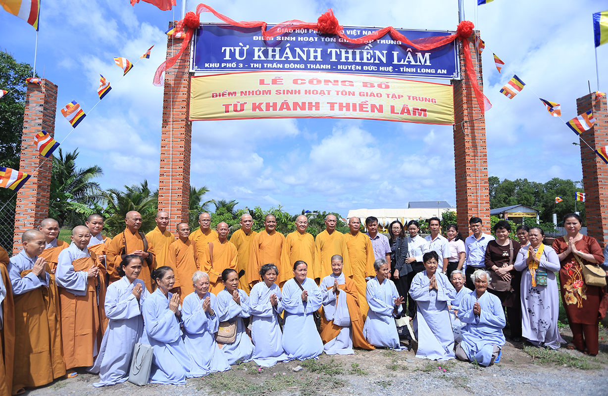 Sáng ngày 07/9/2024 (nhằm ngày 05/8/Giáp Thìn), Ban Trị sự GHPGVN tỉnh Long An phối hợp BTS GHPGVN huyện Đức Huệ và lãnh đạo chính quyền các cấp long trọng tổ chức Lễ công bố điểm nhóm sinh hoạt tôn giáo tập trung Từ Khánh Thiền Lâm, toạ lạc tại Thị trấn Đông Thành, huyện Đức Huệ, tỉnh Long An.