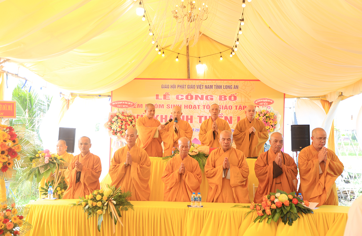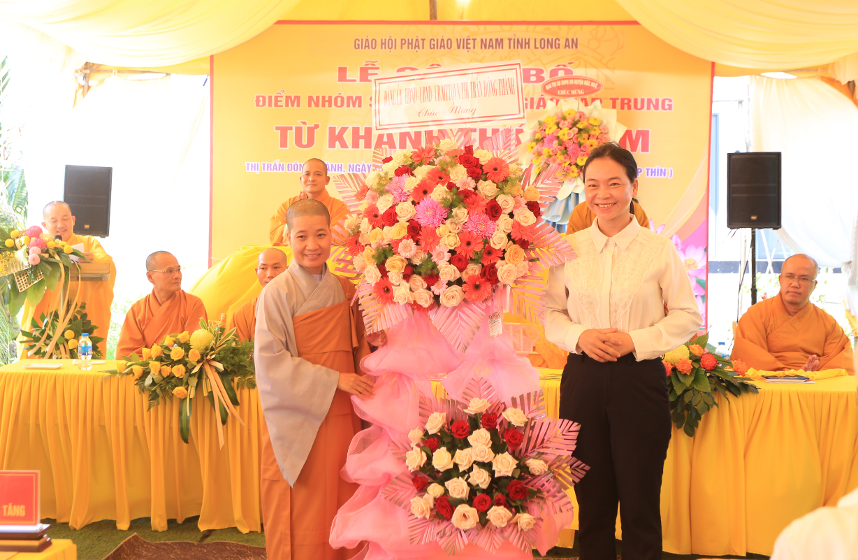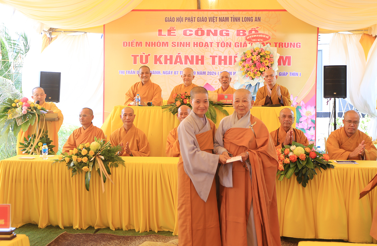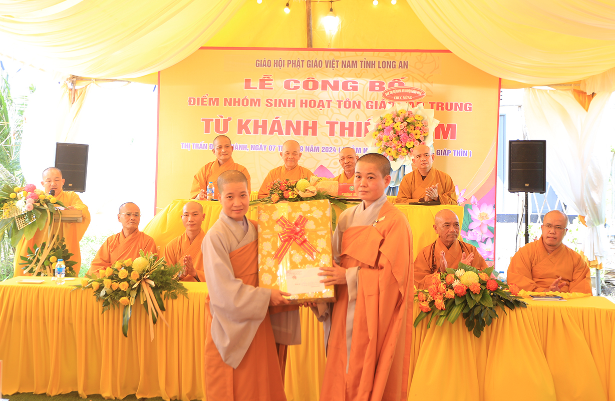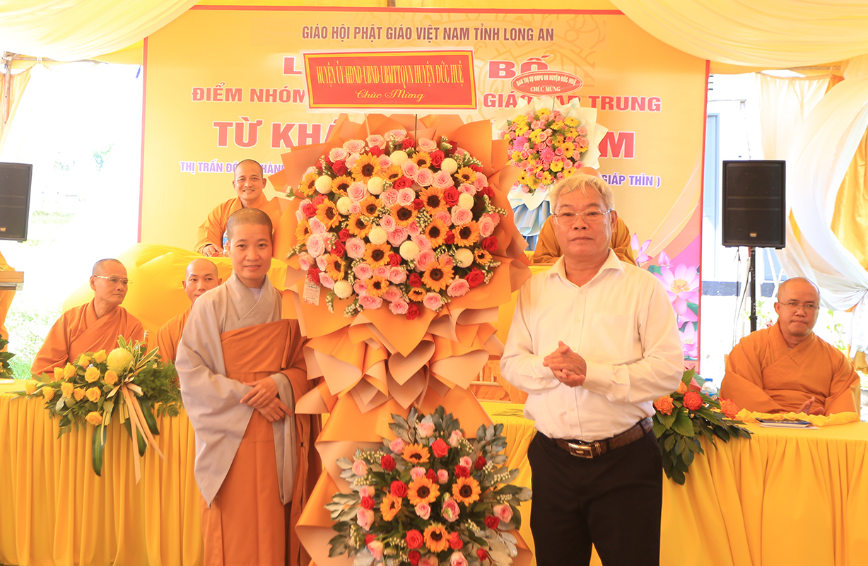 Sáng ngày 07/9/2024 (nhằm ngày 05/8/Giáp Thìn), Ban Trị sự GHPGVN tỉnh Long An phối hợp BTS GHPGVN huyện Đức Huệ và lãnh đạo chính quyền các cấp long trọng tổ chức Lễ công bố điểm nhóm sinh hoạt tôn giáo tập trung Từ Khánh Thiền Lâm, toạ lạc tại Thị trấn Đông Thành, huyện Đức Huệ, tỉnh Long An.
