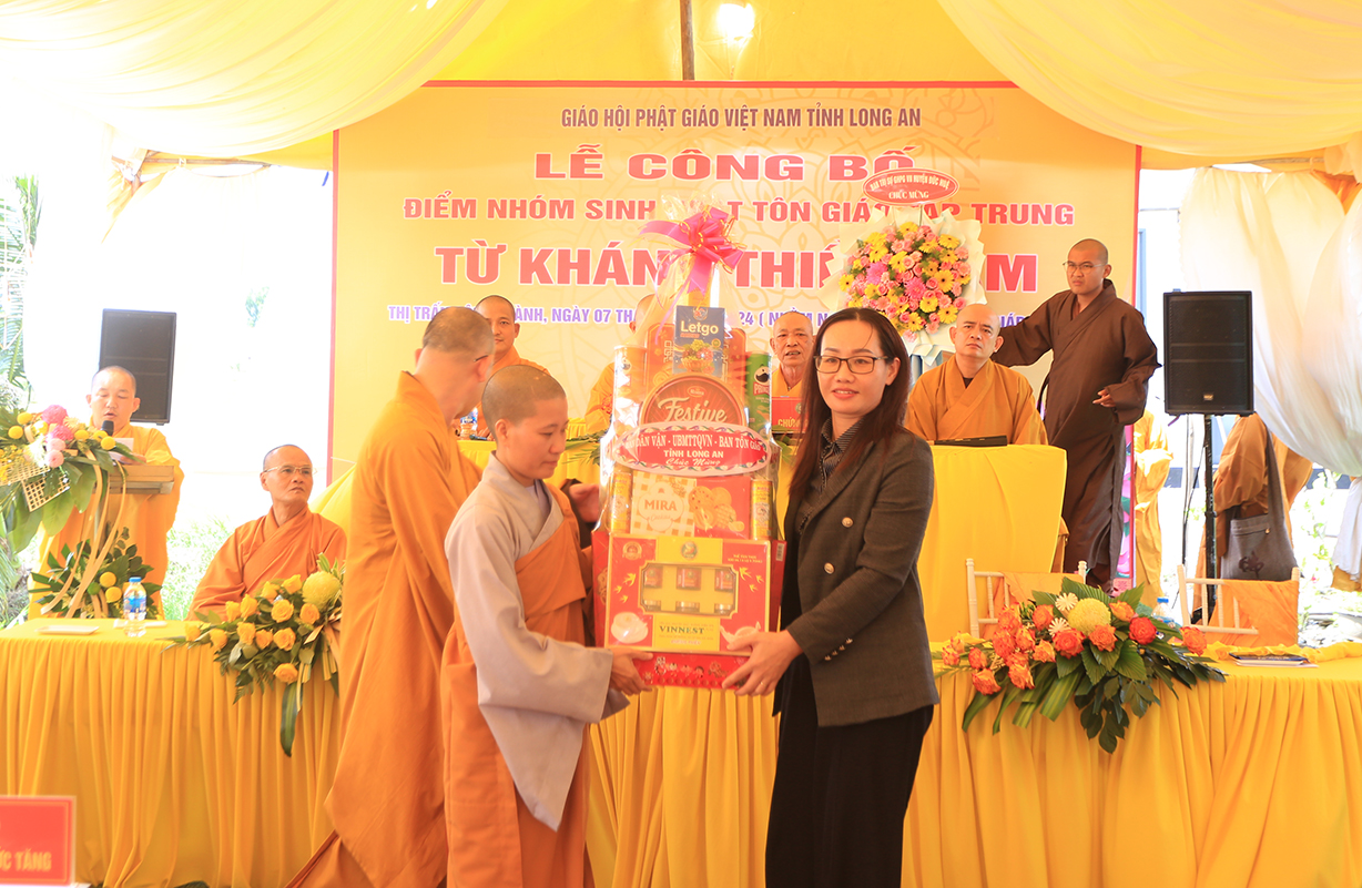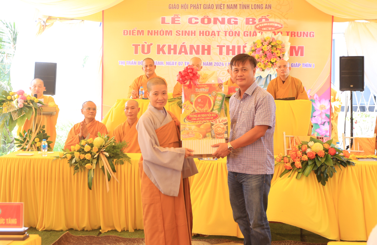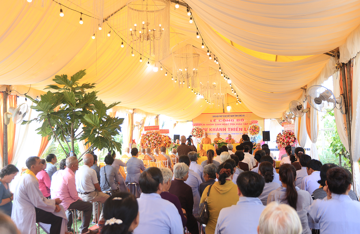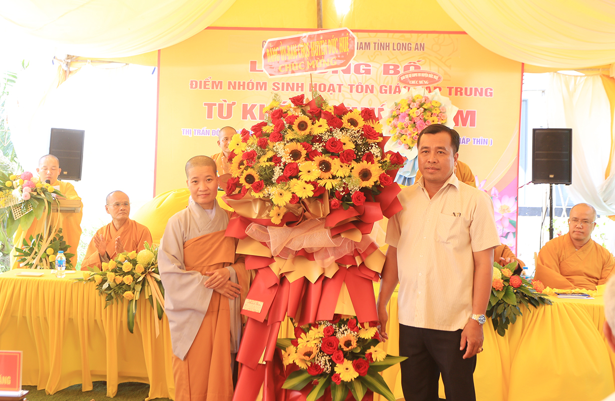 Sáng ngày 07/9/2024 (nhằm ngày 05/8/Giáp Thìn), Ban Trị sự GHPGVN tỉnh Long An phối hợp BTS GHPGVN huyện Đức Huệ và lãnh đạo chính quyền các cấp long trọng tổ chức Lễ công bố điểm nhóm sinh hoạt tôn giáo tập trung Từ Khánh Thiền Lâm, toạ lạc tại Thị trấn Đông Thành, huyện Đức Huệ, tỉnh Long An.