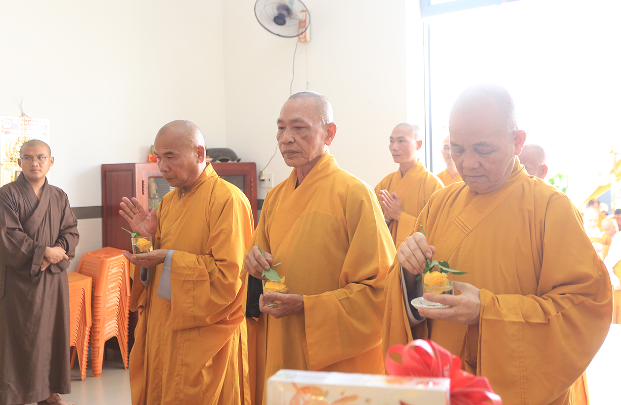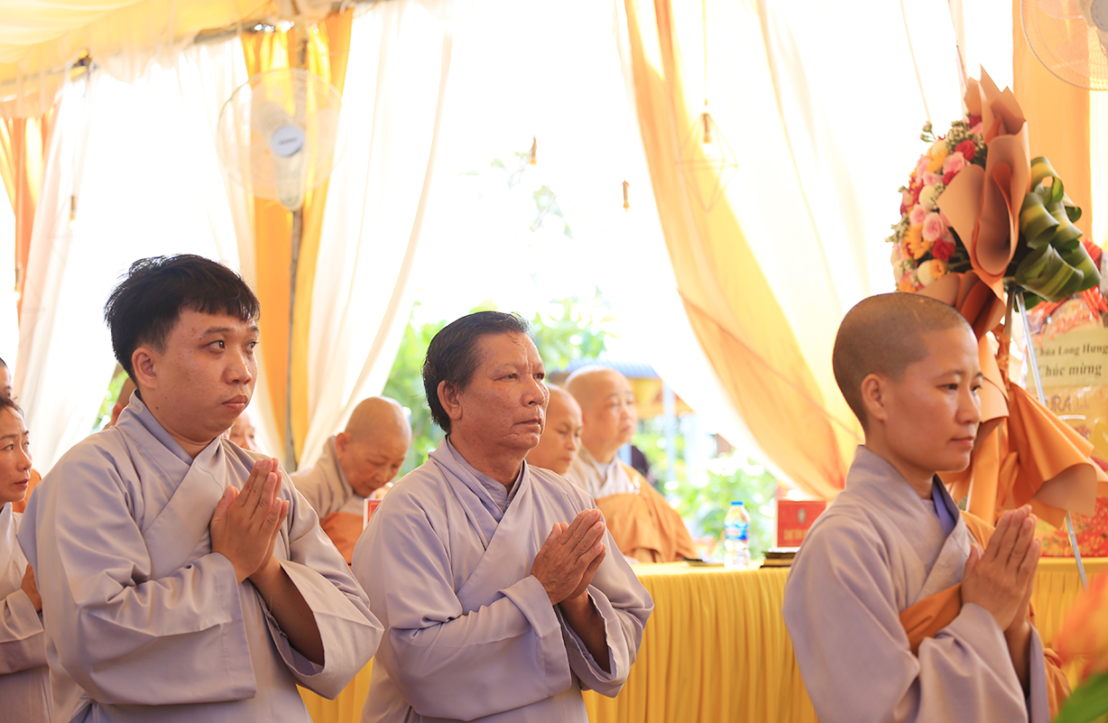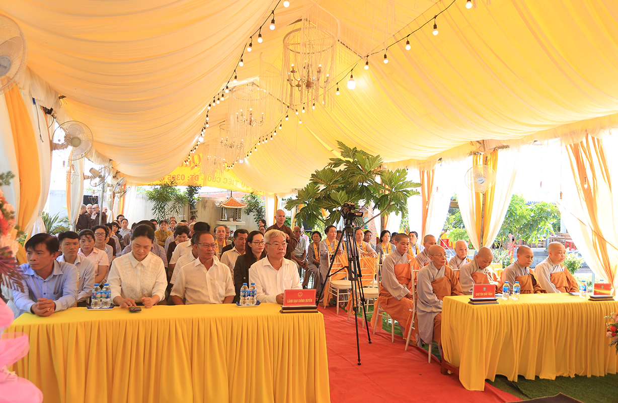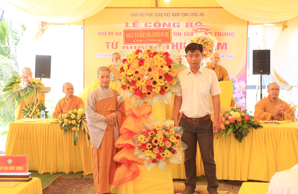 Buỗi lễ cung nghinh sự quang lâm chứng minh của: Trưởng lão HT. Thích Thiện Huệ – Thành viên HĐCM TƯ, Chứng minh BTS GHPGVN tỉnh Long An; HT. Thích Minh Thiện – UV HĐTS, Phó Trưởng Ban Hoằng pháp TƯ, Trưởng BTS GHPGVN tỉnh Long An, Chứng minh BTS GHPGVN huyện Đức Huệ; ĐĐ. Thích Lệ Duyên – Phó Trưởng Ban kiêm Chánh Thư ký BTS GHPGVN tỉnh Long An, Trưởng BTS GHPGVN huyện Đức Hoà; TT. Thích Phước Cường – UV Ban Nghi lễ TƯ, Trưởng Ban Nghi lễ GHPGVN tỉnh Long An; TT. Thích Thiện An – UV BTS GHPGVN tỉnh Long An, Trưởng BTS GHPGVN huyện Đức Huệ; Chư tôn đức Ban Thường trực BTS GHPGVN tỉnh Long An, huyện Đức Huệ; Chư tôn đức Tăng Ni trụ trì các tự viện; Chư tôn đức Tăng Ni đồng về tham dự.