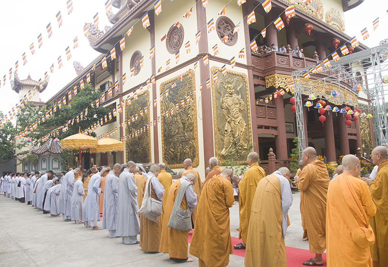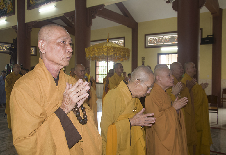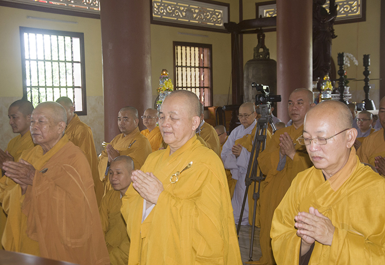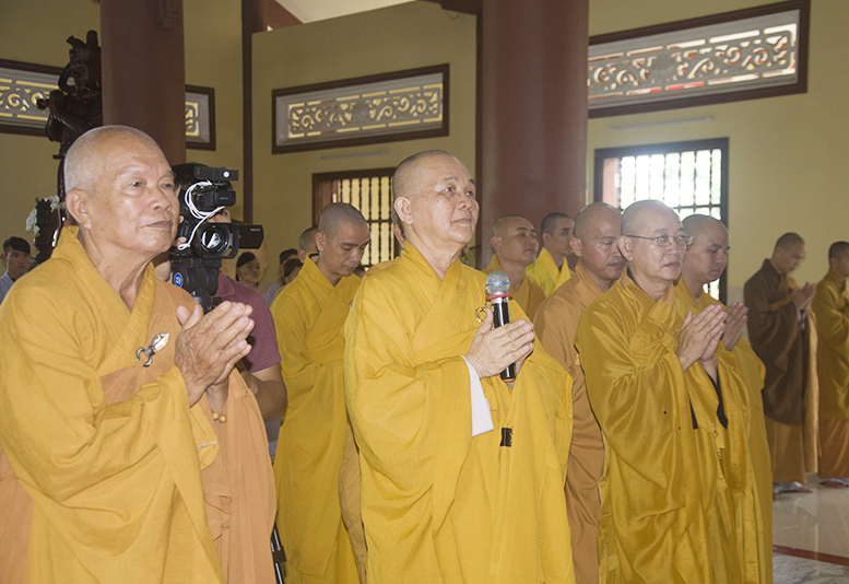 Trong niềm hân hoan, xúc động, HT. Thích Minh Thiện cung kính bày tỏ niềm tri ân sâu sắc đến Đức Trưởng lão Hòa thượng Chủ tịch, bậc Thầy lãnh đạo Giáo hội đã không quản ngại Phật sự trăm bề, luôn nặng tình thương tưởng Phật giáo Long An, tùy thời ân cần quan tâm, động viên sách tấn, chỉ đạo, giúp tỉnh Long An hoàn thành tốt đẹp các mặt Phật sự trong suốt nhiệm kỳ qua (2012-2017). Đến hôm nay, Phật giáo Long An có được những bước chuyển mình, từng bước phát triền mạnh mẽ đều nhờ sự gia hộ của chư Phật, của chư Tôn đức Giáo phẩm HĐTSTW chứng minh.