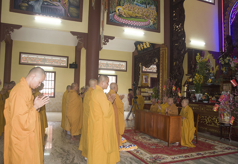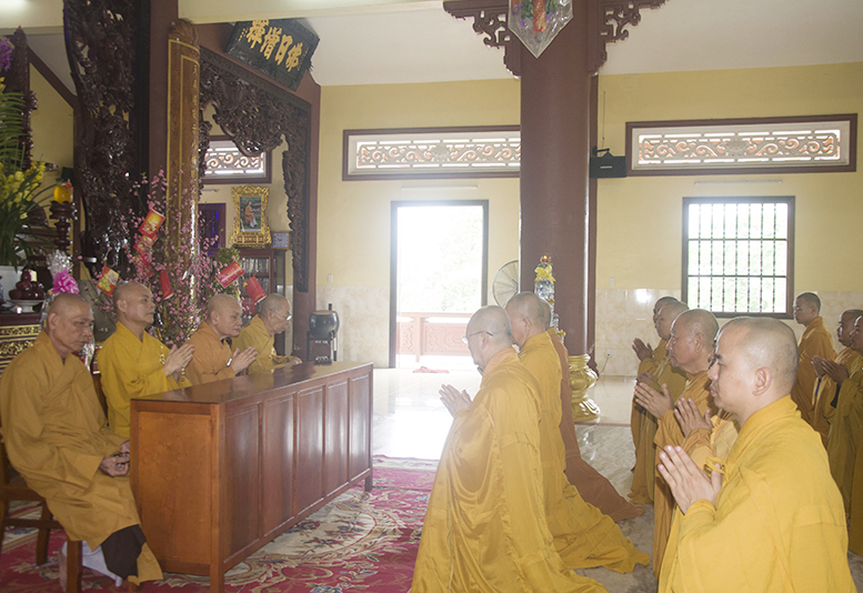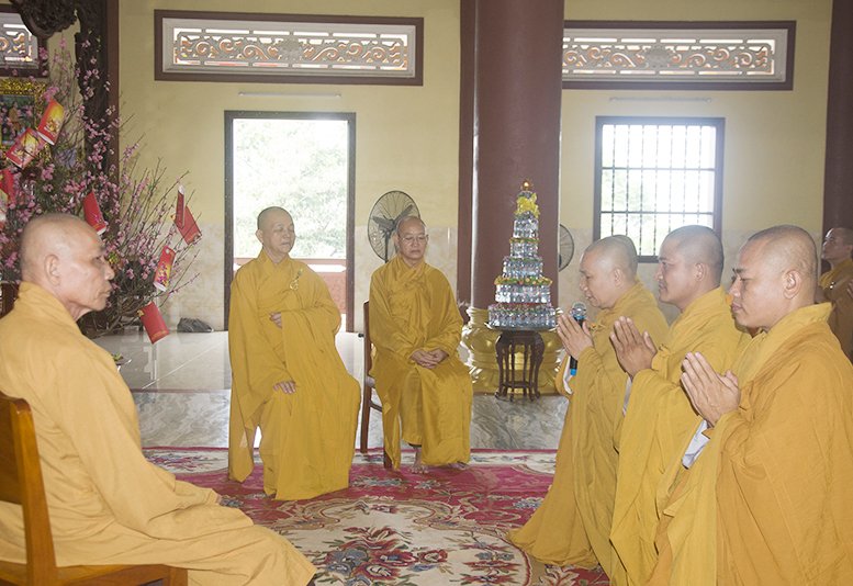 Trước đó Chư tôn đức Tăng Ni trong tỉnh chúc tết Chư tôn đức trong thường trực Ban trị sự tỉnh.
