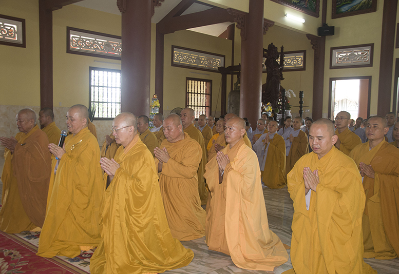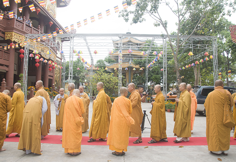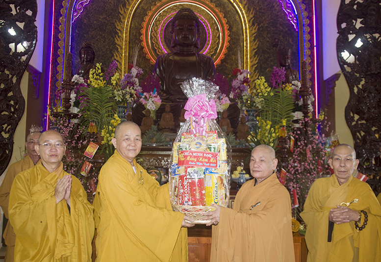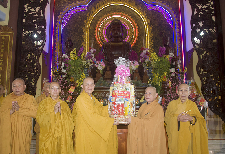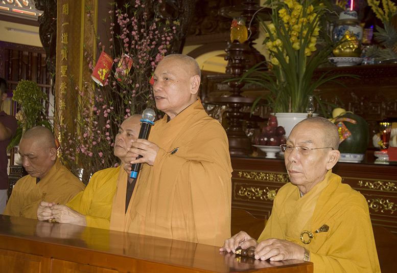 Trong không khí trang nghiêm hòa hợp, ấm tình đạo vị của ngày Xuân Mậu Tuất, đại diện chư Tôn đức Tăng Ni tỉnh nhà, TT. Thích Lệ Trí –Trưởng ban Giáo dục Tăng Ni trân trọng kính thỉnh HT. Thích Minh Thiện – Ủy viên HĐTSTW, Trưởng ban Trị sự GHPGVN tỉnh Long An cung đối trước Quý Ngài kính dâng lời khánh tuế đầu xuân.