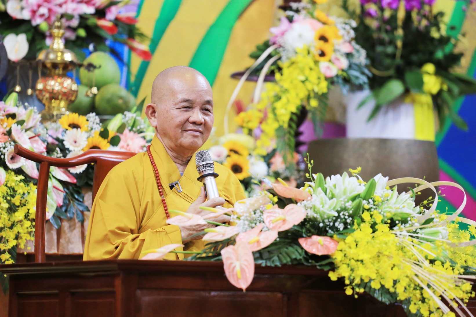Hòa thượng đã giải giảng câu kinh Pháp Cú: Hạnh phúc thay! Đức Phật đản sinh; hạnh phúc thay! Giáo pháp cao minh; hạnh phúc thay! Tăng già hòa hợp; hạnh phúc thay! Tứ chúng đồng tu”.