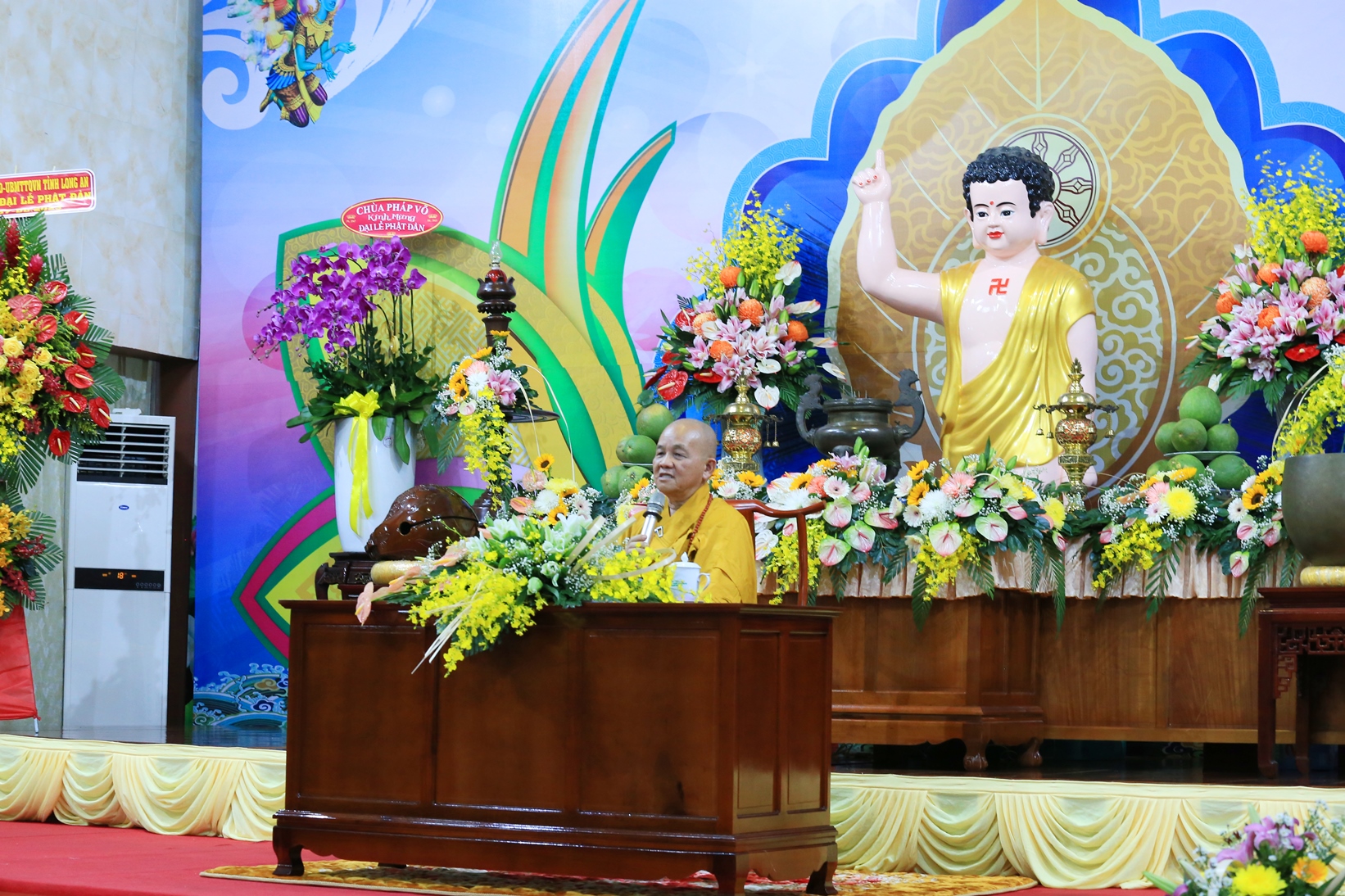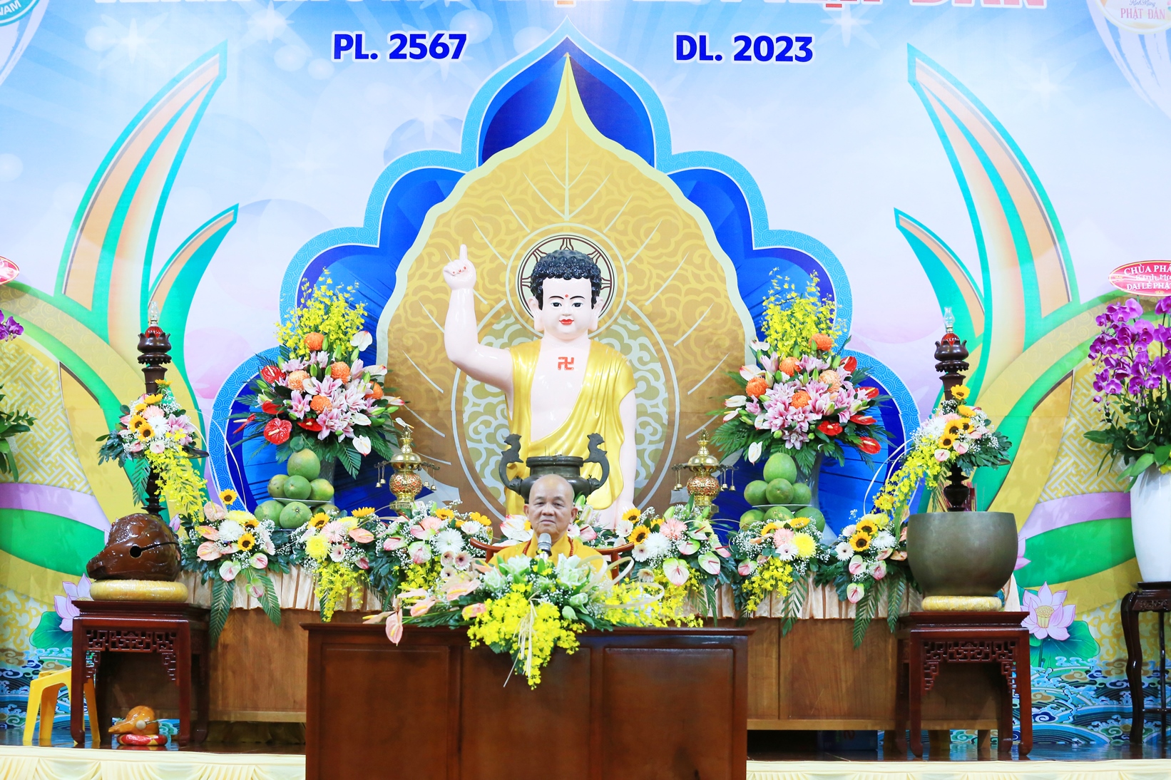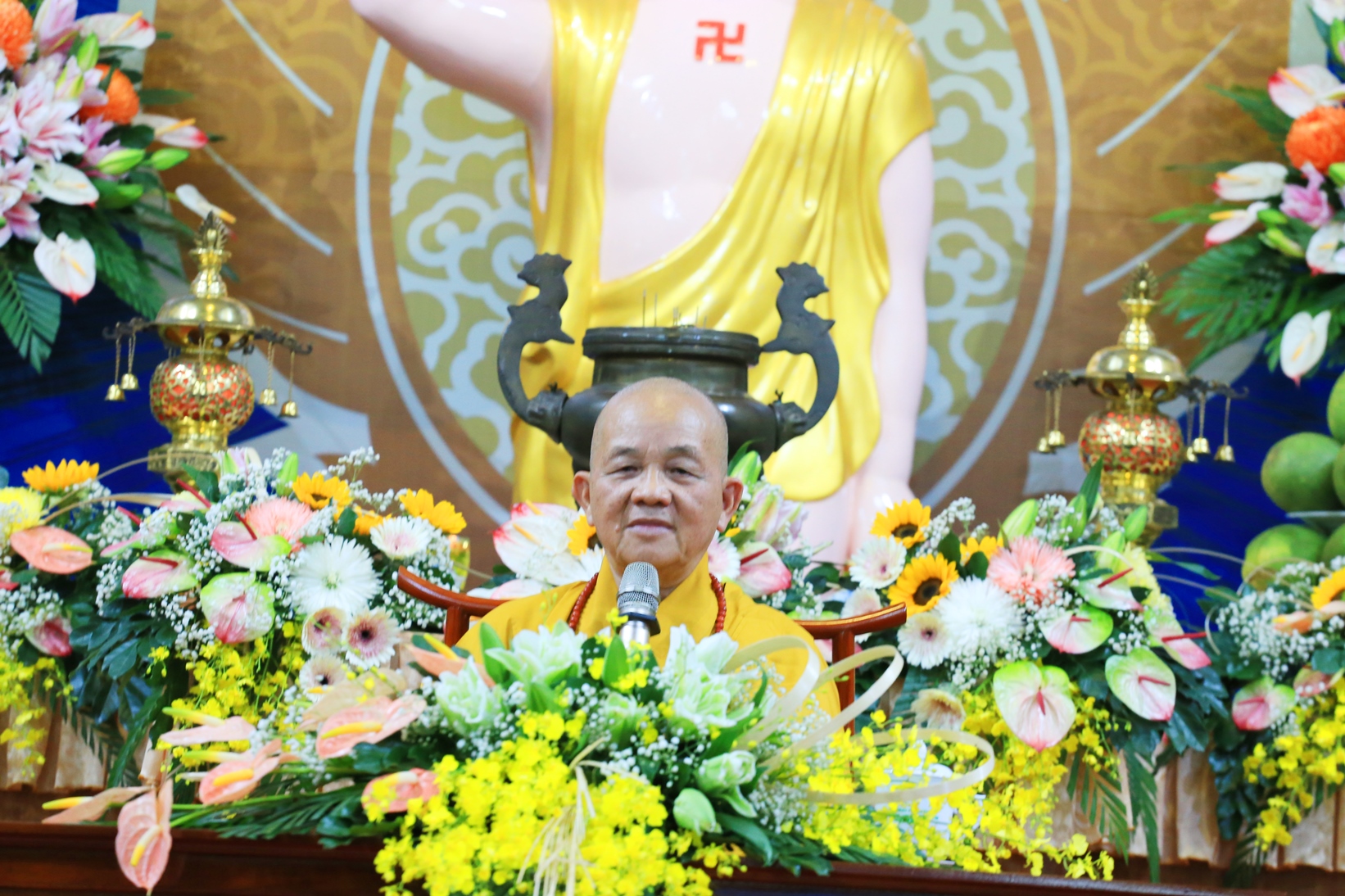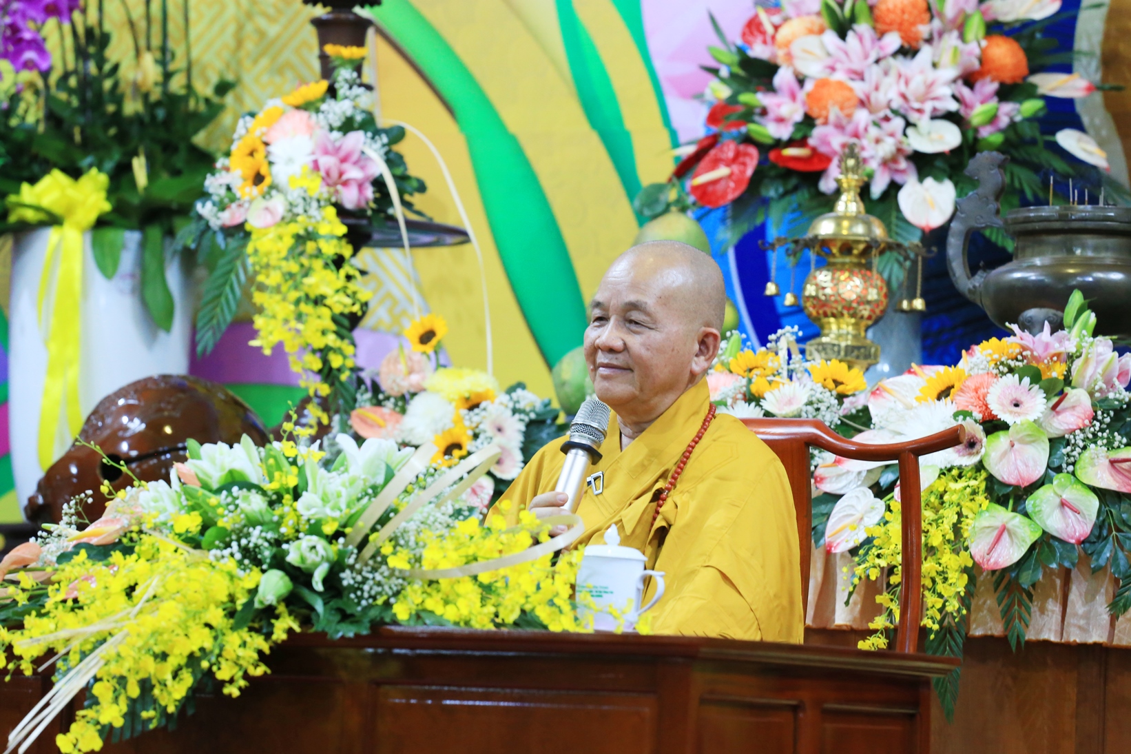 Hòa thượng làm nổi bậc ý nghĩa đức Phật đản sinh ở cõi trần gian, rồi chứng thành đạo quả. Từ đó mà khai mở ra trí tuệ để chúng sinh quy hướng tu hành để thành công đắc quả. Đức Phật đã chỉ rõ bờ mê và bến giác, nêu ra nhiều phương cách tu hành để thích hợp với tất cả mọi người và mọi loại. Chúng ta có phước duyên nhiều đời nên được kính tin Tam Bảo và thực hành giáo pháp cao quý của Đức Thế Tôn để tiến bộ nhân cách. Cảm niệm ơn Đức Phật, sự tinh tấn tu hành là sự báo ơn cao quý, bên cạnh đó phụng sự cho nhân sinh để tốt đời đẹp đạo là sự tạo phước cho đời này và đời sau.