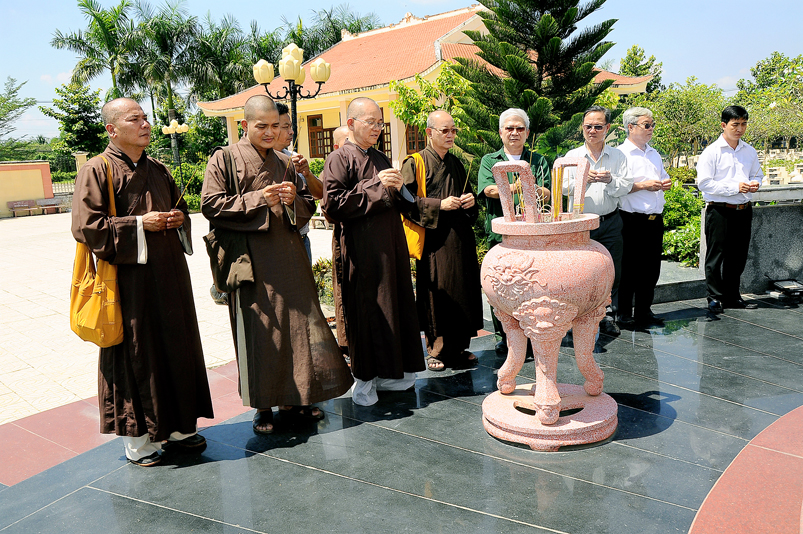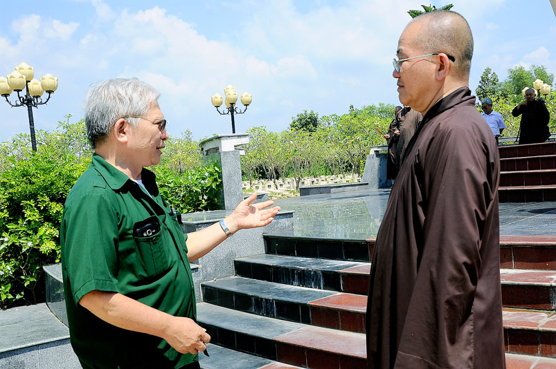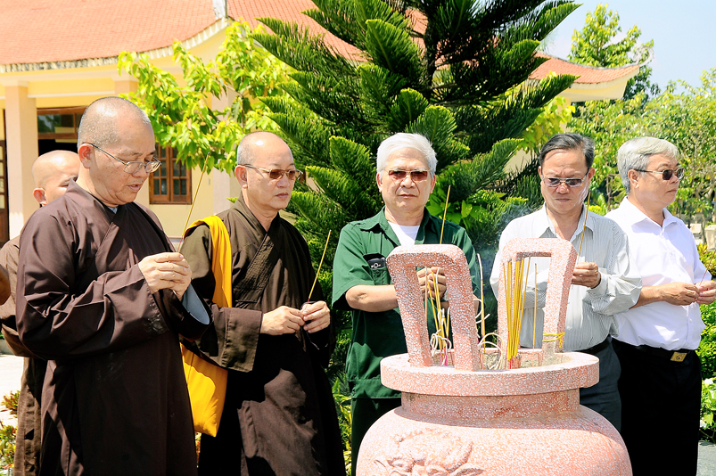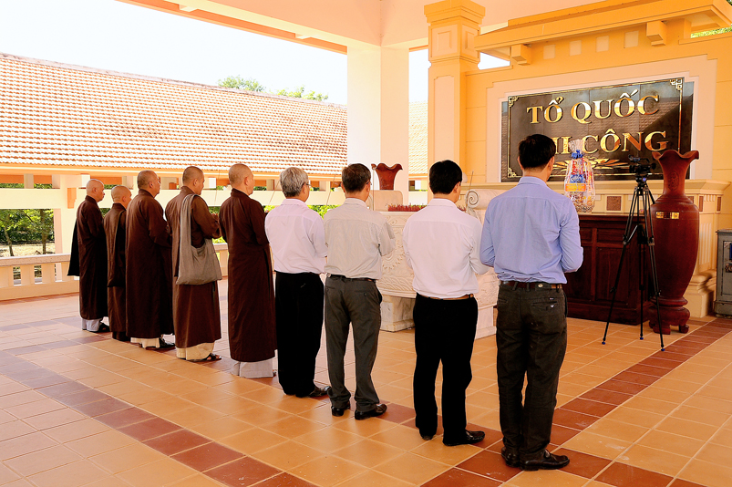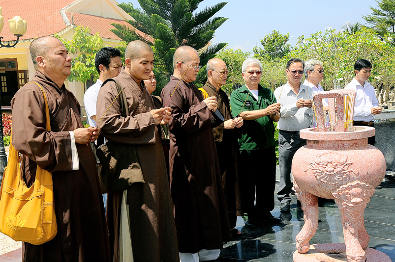 Chiến tranh đã đi qua, nhưng dư âm còn vọng mãi, mảnh đất đang hồi sinh hiện tại luôn thấm đậm từng hơi thở, vị mặn của người xưa. Vì thế, để tưởng nhớ tri ân các anh hùng liệt sĩ, Hòa thượng Trưởng ban đã dẫn đoàn đi thăm từng khu mộ, thầm chúc nguyện các anh linh đầy đủ phước lành tái sanh cảnh giới tốt đẹp….