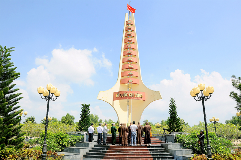 Khu di tích lịch sử cách mạng tỉnh Long An rộng đến 98 ha. Các công trình trong khu di tích này được xây dựng theo kiểu kiến trúc hiện đại và truyền thống. Tại đây, có hơn 26.000 bia mộ của các liệt sĩ được thờ tự. Hoà thượng cùng chư tôn đức thăm nghĩa trang liệt sĩ tại huyện Đức Huệ, nơi an trí 2150 anh hùng tử sĩ một lòng quyết tử cho Tổ quốc quyết sinh.