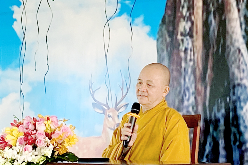 Mở đầu buổi thuyết giảng, Hòa thượng đã gởi lời vấn an sức khỏe đến toàn thể Chư Tôn Đức Ban chức sự hạ trường và chư hành giả an cư với tinh thần sách tấn đầy niềm hoan hỷ.