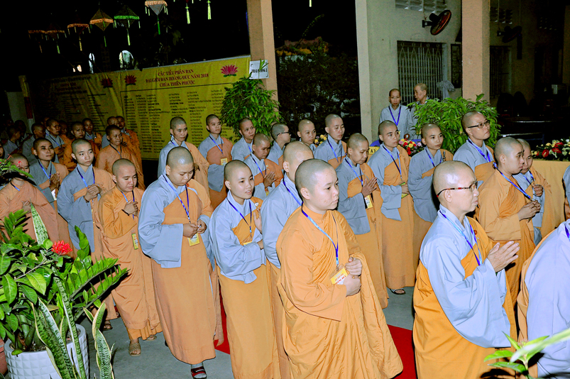 Với số lượng giới tử khá đông, Trai đường I Ni Viên Thiên Phước không đủ sức chứa, Ban quản giới tử phải sắp xếp ghế ngoài hành lang cho giới tử ngồi