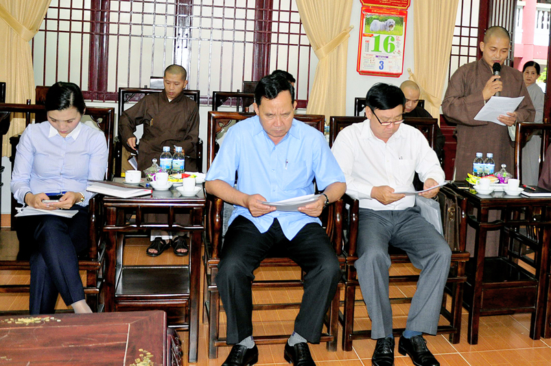 Tại buổi họp, HT.Thích Minh Thiện, ĐĐ.Thích Lệ Duyên, Chánh Thư ký BTS GHPGVN tỉnh Long An đã trình bày lại những vấn đề của chùa Tân Diệu (ấp Chánh Hội, X.Tân Mỹ, H.Đức Hòa, Long An) gây dư luận trong thời gian qua.