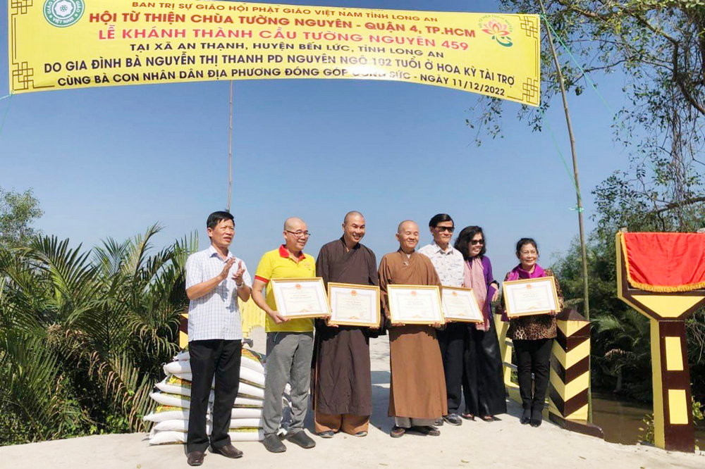 Sáng ngày 11/12/2022 , Ban Trị sự GHPGVN huyện Bến Lức kết hợp với Ủy ban nhân dân xã An Thạnh huyện Bến và nhà tài trợ tổ chức Lễ khánh thành cầu giao thông nông thôn Tường Nguyên 459 tại ấp 5 xã An Thạnh.