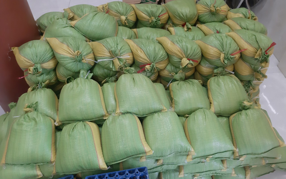 Quà gồm 1,5 tấn gạo 70 thùng mì, 200 chai nước tương. 200kg đường. 2000 trứng gà.Tổng trị giá hơn 30 triệu đồng.