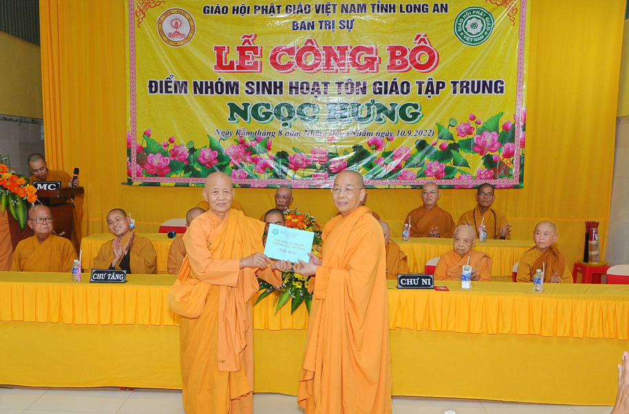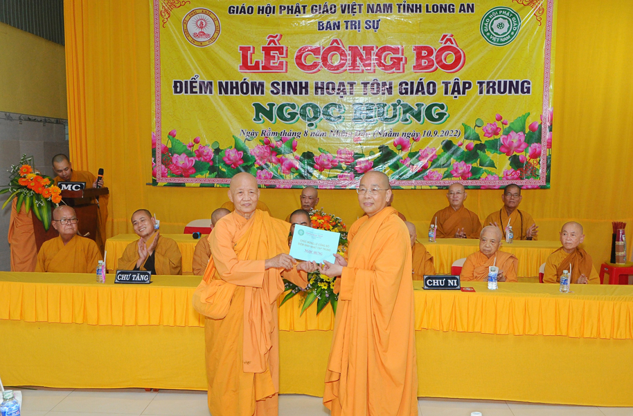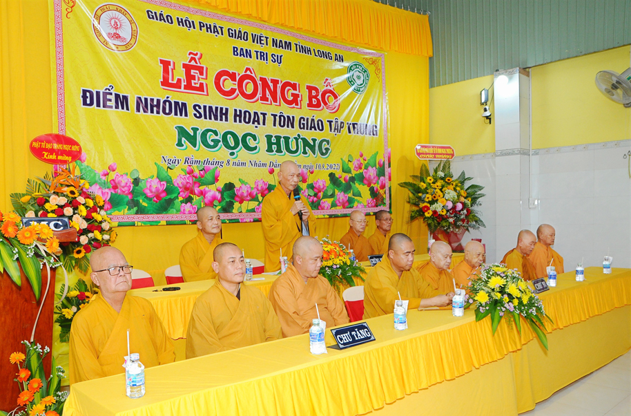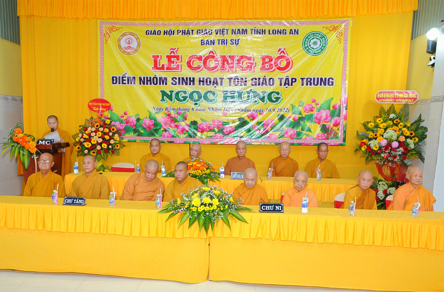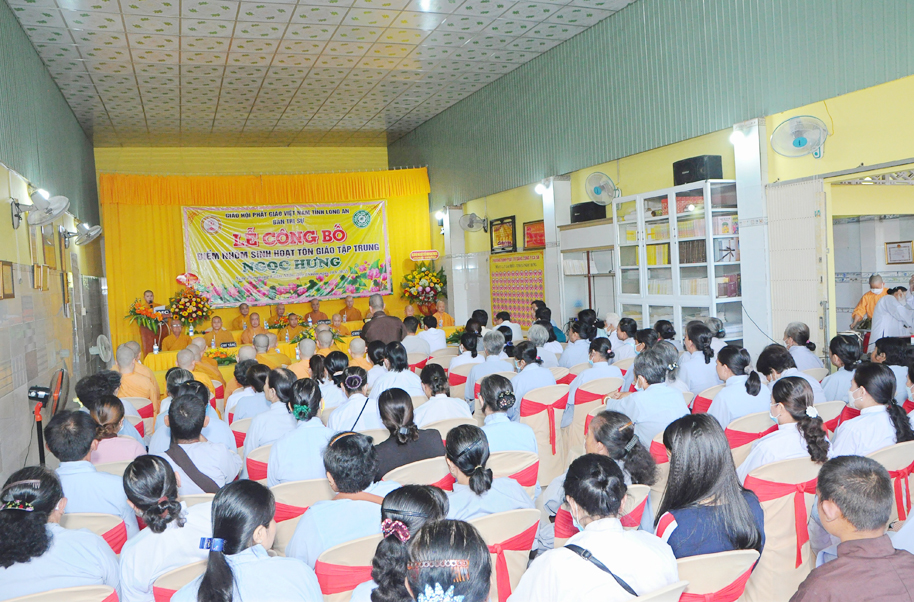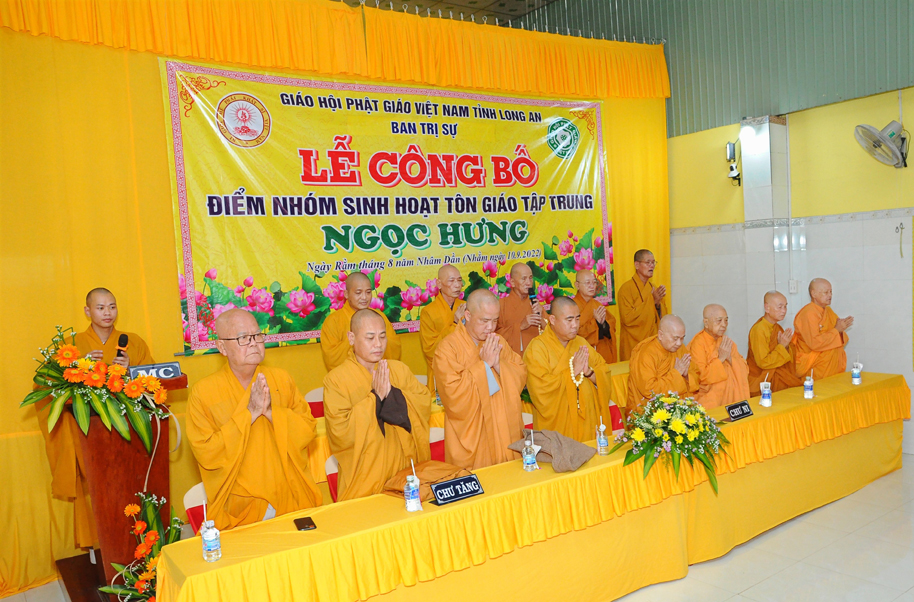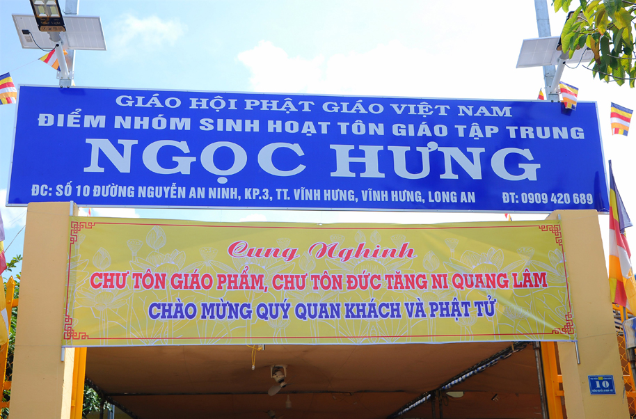 Sáng ngày 10 tháng 9 năm 2022 (nhằm ngày 15/8/Nhâm Dần), Ban Trị sự GHPGVN tỉnh Long An kết hợp cùng Ban Trị sự GHPGVN huyện Vĩnh Hưng tổ chức Lễ Công Bố Điểm Nhóm Sinh Hoạt Tôn Giáo Tập Trung Ngọc Hưng tọa lạc đường Nguyễn An Ninh, thị trấn Vĩnh Hưng, huyện Vĩnh Hưng, tỉnh Long An.