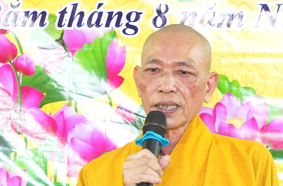 Đãi lao chư tôn đức chứng minh, Hòa thượng Thích Thiện Huệ có lời đạo từ tại buổi lễ. Hòa thượng đã thay mặt cho chư Tôn đức chứng minh và Hòa thượng Trưởng ban Trị sự GHPGVN tỉnh Long An gửi lời chúc mừng đến Ni sư cùng đại chúng Ni và đạo tràng Phật tử nơi điểm nhóm sinh hoạt tôn giáo tập trung Ngọc Hưng. Hòa thượng nhắc nhở Ni sư về nghĩa vụ “Hoằng pháp vi gia vụ – Lợi sinh vi bổn hoài” cao quý của người đệ tử học Phật, tất cả mọi việc làm đều hướng về lợi ích của cộng đồng Phật tử, của mọi người, luôn đồng hành cùng Nhà nước, tuân thủ Pháp luật, giữ gìn cương lĩnh giới luật. Hòa thượng giử lời mong mỏi của Hòa thượng Trưởng ban Trị sự GHPGVN tỉnh Long An với chính quyền địa phương hãy tạo điều kiện, quan tâm, giúp đỡ cho điểm nhóm sinh hoạt. Cuối lời, Hòa thượng tán thán vì NS đã trở về nơi điểm nhóm sinh hoạt này để cùng với chính quyền địa phương thể hiện tinh thần đạo Phật đồng hành cùng dân tộc, là đường hướng giúp mọi người thoát khổ, trở về bến bờ an vui.