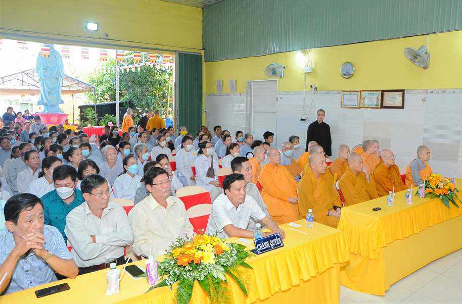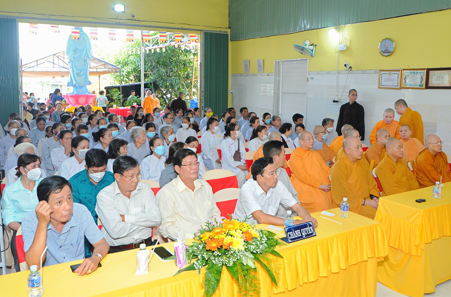 Quang lâm về chứng minh và tham dự buổi lễ có sự hiện diện của: Hòa thượng Thích Thiện Huệ, Hòa thượng Thích Quảng Ý – đồng Chứng minh BTS GHPGVNtỉnh Long An; Thượng tọa Thích Quảng Tâm – UV HĐTS, Phó Trưởng ban Thường trực BTS GHPGVN tỉnh Long An; Đại đức Thích Lệ Duyên – Phó ban kiêm Chánh Thư ký BTS GHPGVN tỉnh Long An, Trưởng BTS GHPGVN huyện Đức Hòa; Đại đức Thích Thiện Danh – Phó Thư ký kiêm Chánh Văn phòng BTS GHPGVN tỉnh Long An; Thượng tọa Thích Lệ Tấn – Trưởng BTS GHPGVN huyện Tân Thạnh; Đại đức Thích An Khang – Trưởng BTS GHPGVN huyện Vĩnh Hưng; Đại đức Thích Hóa Minh – Trưởng BTS GHPGVN thị xã Kiến Tường; Ni trưởng Thích nữ Tố Liên – UV HĐTS, Cố vấn Phân ban Ni giới TW; Ni trưởng Thích nữ Gương Liên – Phó BTS kiêm Trưởng Phân ban Ni giới GHPGVN tỉnh Long An; Chư tôn đức Tăng ni thường trực BTS GHPGVN tỉnh Long An, các huyện thị xã thành phố đồng về tham dự.