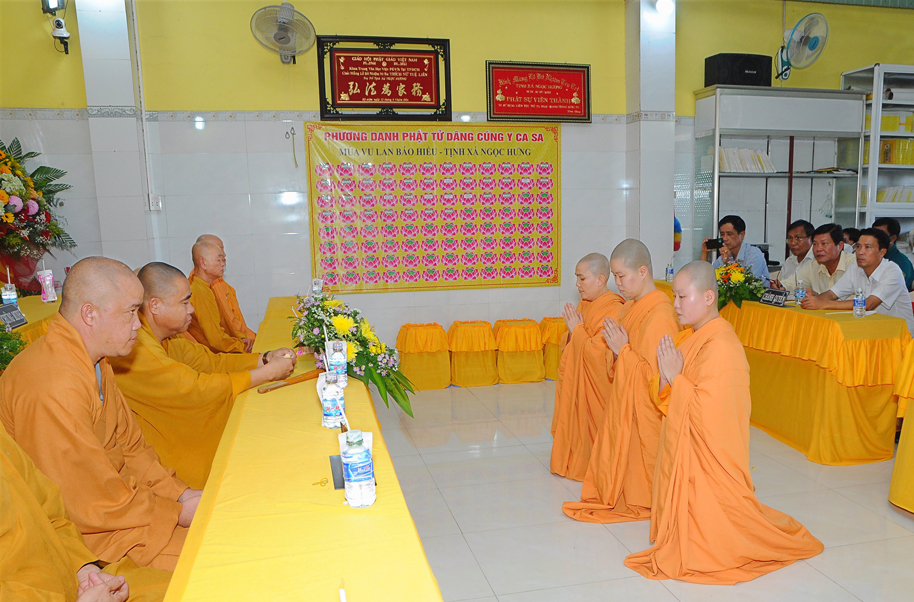 Đại diện Chư tôn đức Thường trực BTS GHPGVN tỉnh Long An, Đại đức Thích Lệ Duyên – Chánh Thư ký kiêm Trưởng ban Phật giáo Quốc tế GHPGVN tỉnh Long An thông qua Giấy chứng nhận đăng ký sinh hoạt Tôn giáo tập trung Ngọc Hưng tại số 10, đường Nguyễn An Ninh, thị trấn Vĩnh Hưng, huyện Vĩnh Hưng, tỉnh Long An, thuộc Ban Trị sự GHPGVN tỉnh Long An, với người đại diện là Quyền Tôn Nữ Quý Liên sinh ngày 8/7/1960 dân tộc Kinh, tên gọi trong tôn giáo là Ni sư Thích nữ Tuệ Liên , thường trú Tịnh xá Ngọc Long, ấp 2, xã Xuân Hòa, huyện Xuân Lộc, tỉnh Đồng Nai. Với số lượng người tham gia sinh hoạt tại thời điểm đăng ký là 96 người theo nội dung và thời gian đã đăng ký.