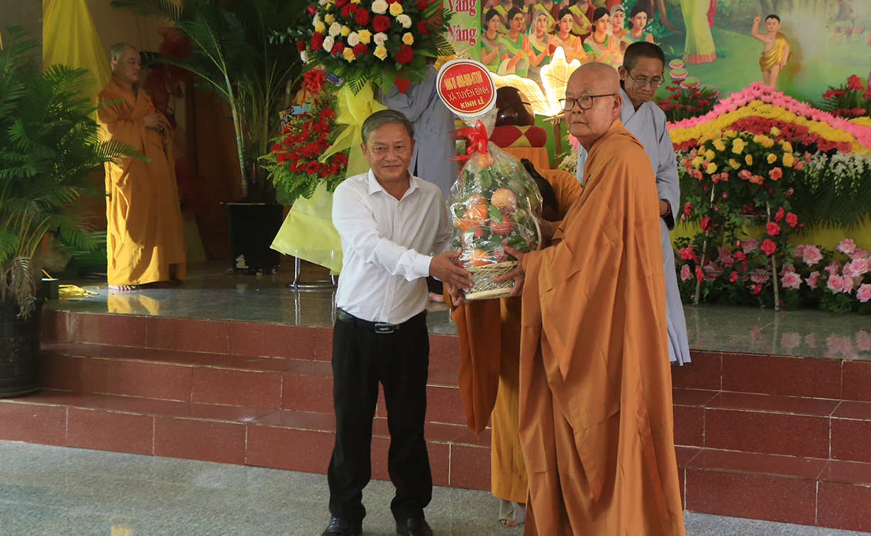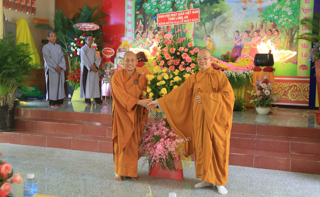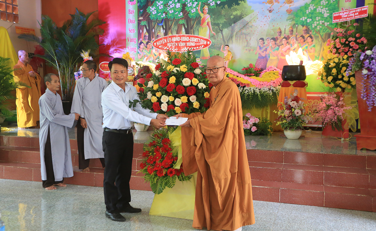 Dịp này, Ban tổ chức đón nhận nhiều lẵng hoa chúc mừng Phật Đản GHPGVN tỉnh Long An và Chính quyền địa phương huyện Vĩnh Hưng.