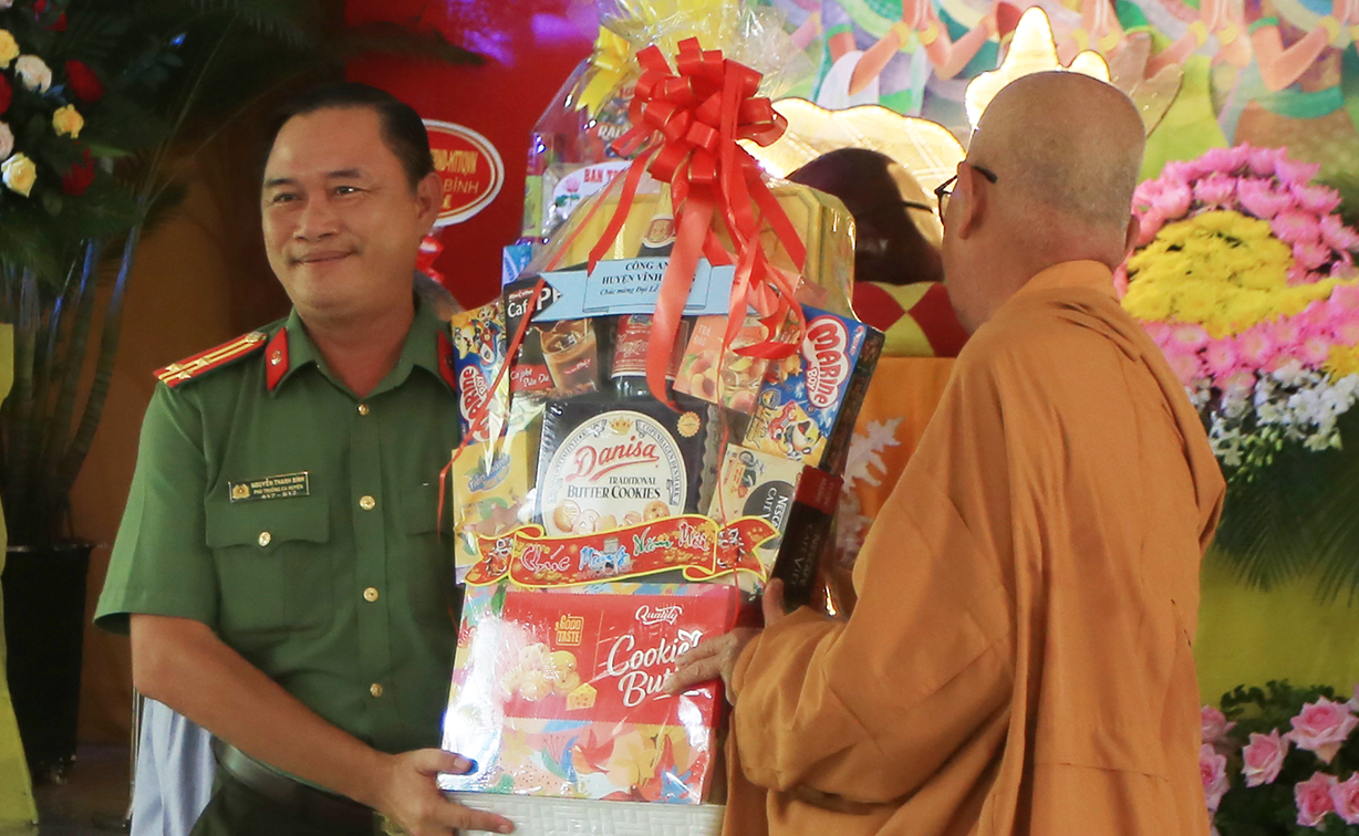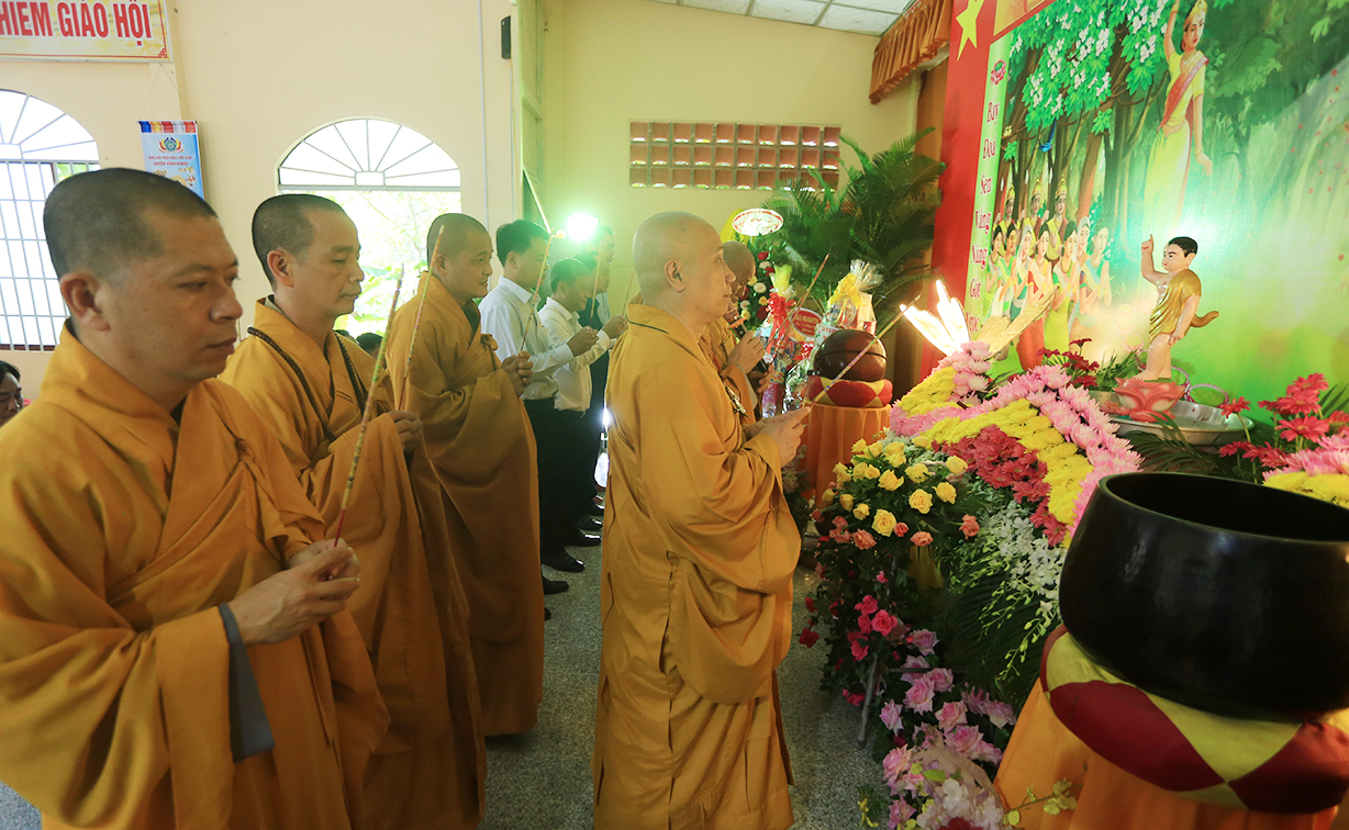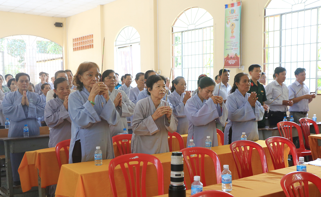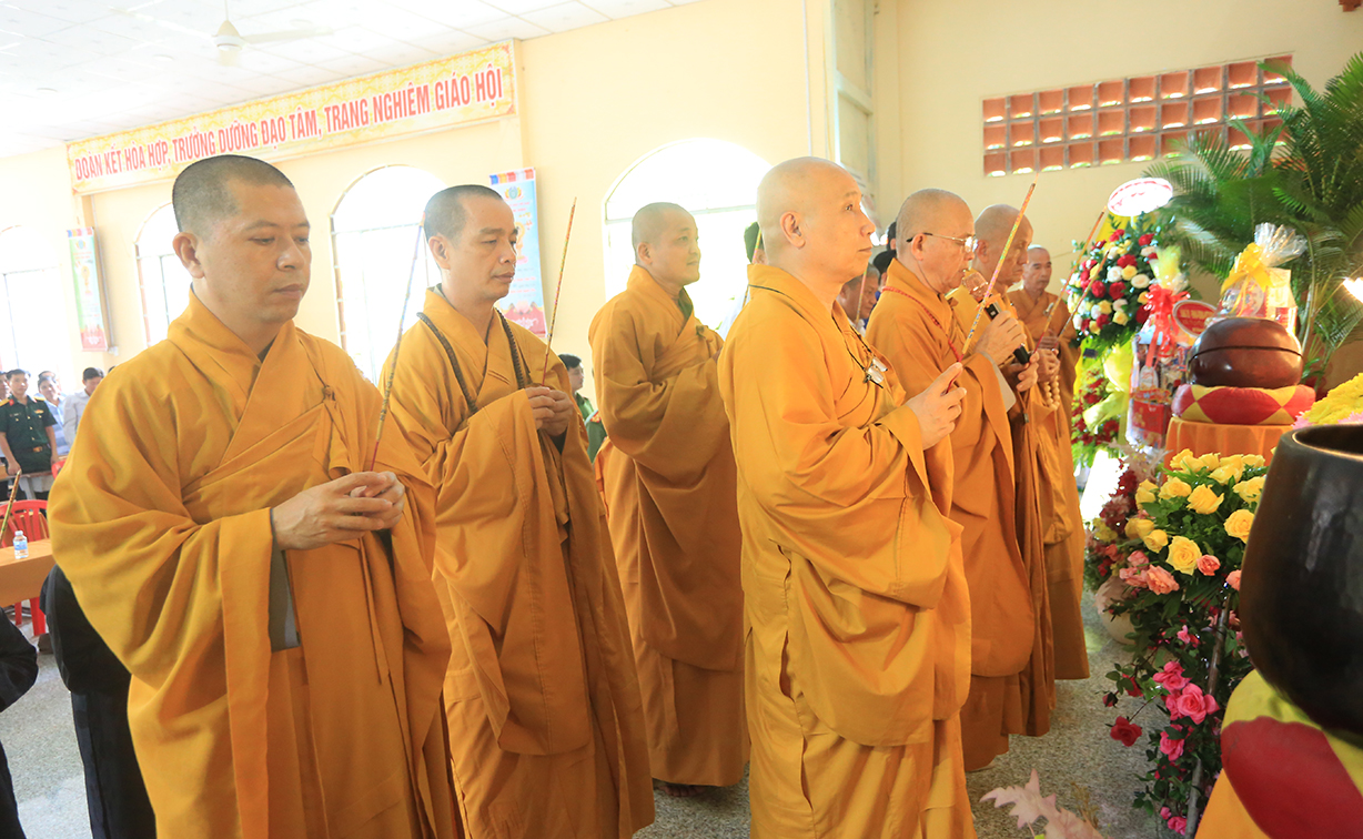 Đại lễ có sự chứng minh của Trưởng lão HT.Thích Quảng Ý – Chứng Minh BTS GHPGVN tỉnh Long An, Chứng Minh BTS GHPGVN huyện Vĩnh Hưng; Hoà Thượng Thích Minh Thiện- Uỷ viên Hội Đồng Trị Sự GHPGVN, Phó Ban Hoằng Pháp Trung Ương GHPGVN, Trưởng Ban Trị Sự GHPGVN tỉnh Long An; Thượng toạ Thích Đức Hoàng – Phó Ban Trị sự GHPGVN tỉnh Long An; Đại đức Thích Lệ Duyên – Phó Trưởng Ban kiêm Chánh Thư ký Ban Trị Sự GHPGVN tỉnh Long An); Đại đức Thích Thiện Danh – Phó Thư ký – Chánh Văn phòng BTS GHPGVN tỉnh Long An; Đại đức Thích An Khang – Trưởng ban Trị sự GHPGVN huyện Vĩnh Hưng; cùng chư Tôn đức Tăng Ni các tự viện trong và ngoài huyện Vĩnh Hưng, cùng đông đảo Phật tử về tham dự.