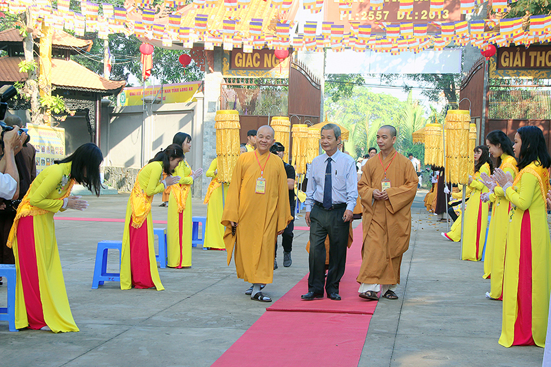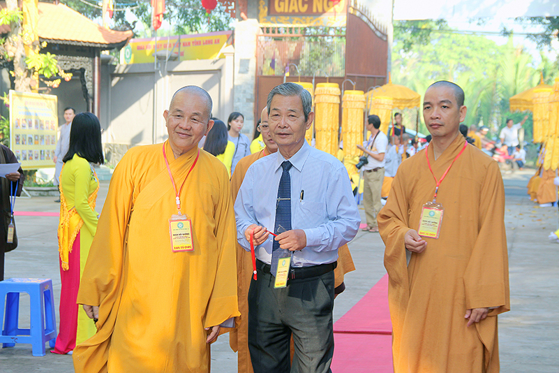 Quang lâm chứng minh buổi lễ có: HT. Thích Thiện Nhơn – Chủ tịch Hội đồng Trị sự (HĐTS) GHPGVN; HT.Thích Thiện Pháp – Phó Chủ tịch Thường trực HĐTS, Trưởng ban Tăng sự TƯ GHPGVN; HT. Thích Gia Quang – Phó Chủ tịch HĐTS, Trưởng ban Thông tin Truyền Thông TƯ GHPGVN, Trưởng ban Tổ chức (BTC); HT. Thích Thiện Tâm – Phó Chủ tịch HĐTS, Phó trưởng Ban Phật giáo Quốc tế GHPGVN; HT. Thích Minh Thiện – Ủy viên HĐTS, Trưởng ban Trị sự Giáo hội Phật giáo Việt Nam tỉnh Long An, Phó Thường trực BTC; cùng chư Tôn đức HĐTS; Ban ngành viện Trung ương GHPGVN, chư Tôn đức lãnh đạo các Ban Trị sự GHPGVN tỉnh/thành phố và Ban Thông tin Truyền thông GHPGVN 63 tỉnh trong cả nước đồng về tham dự.