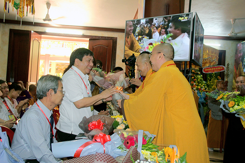 HT.Thích Thiện Nhơn, Chủ tịch HĐTS; HT.Thích Thiện Pháp, Phó Chủ tịch Thường trực HĐTS kiêm Trưởng ban Tăng sự T.Ư; chư tôn giáo phẩm Phó Chủ tịch HĐTS, Ban TT-TT T.Ư đã quang lâm chứng minh buổi lễ.